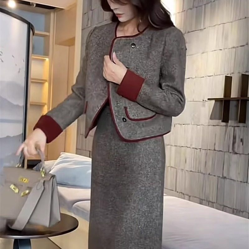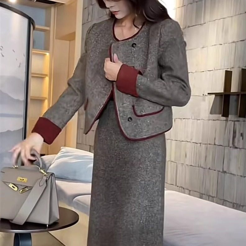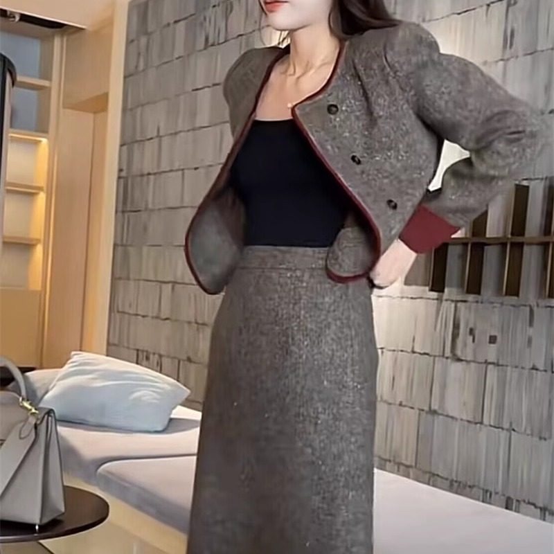 法式轻奢减龄网红炸街爆款减龄小香风女士套装裙短款外套+半身裙