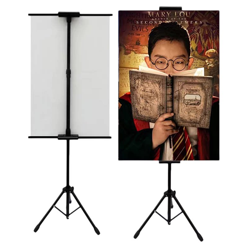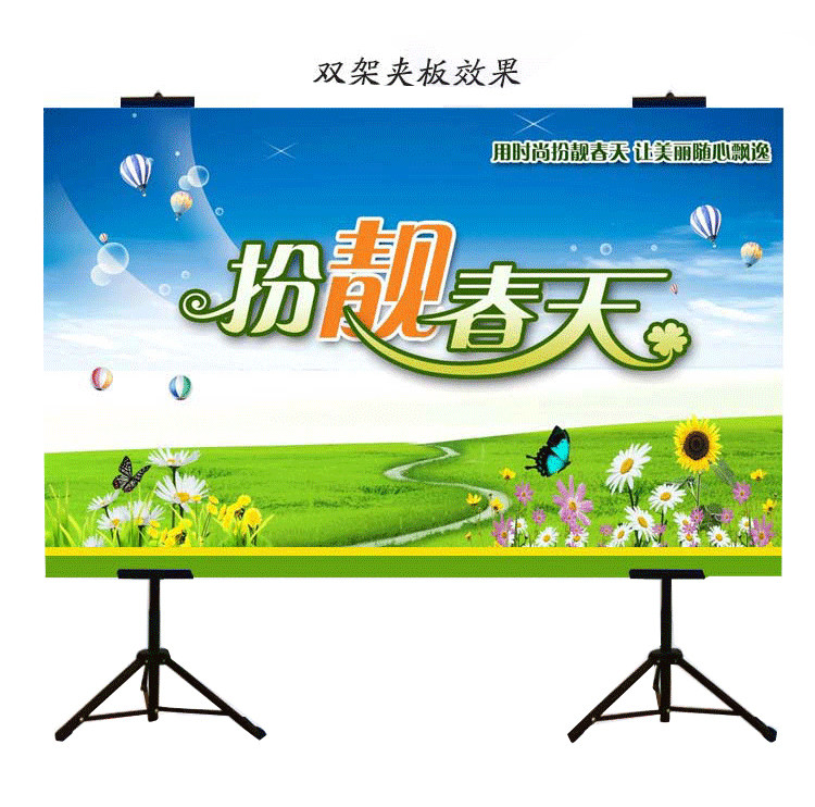 简约挂画架双面KT板支架广告展板架海报制作收缩易拉宝铁三脚架子