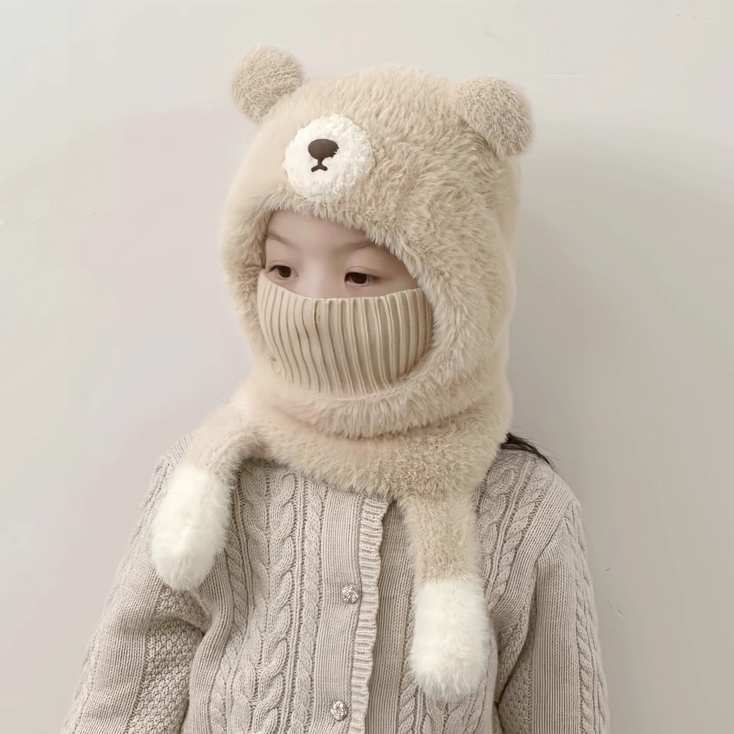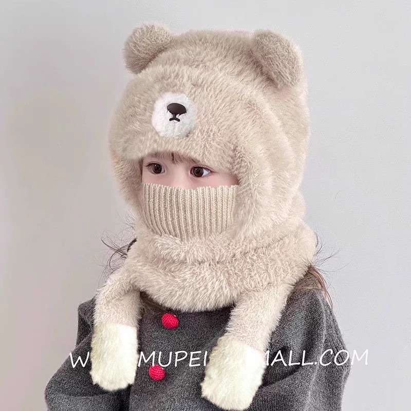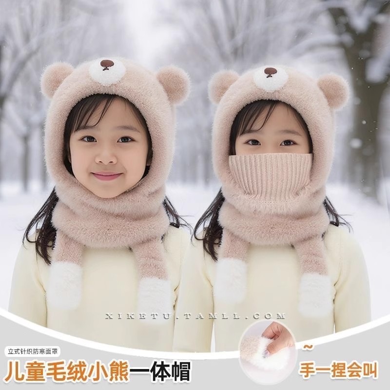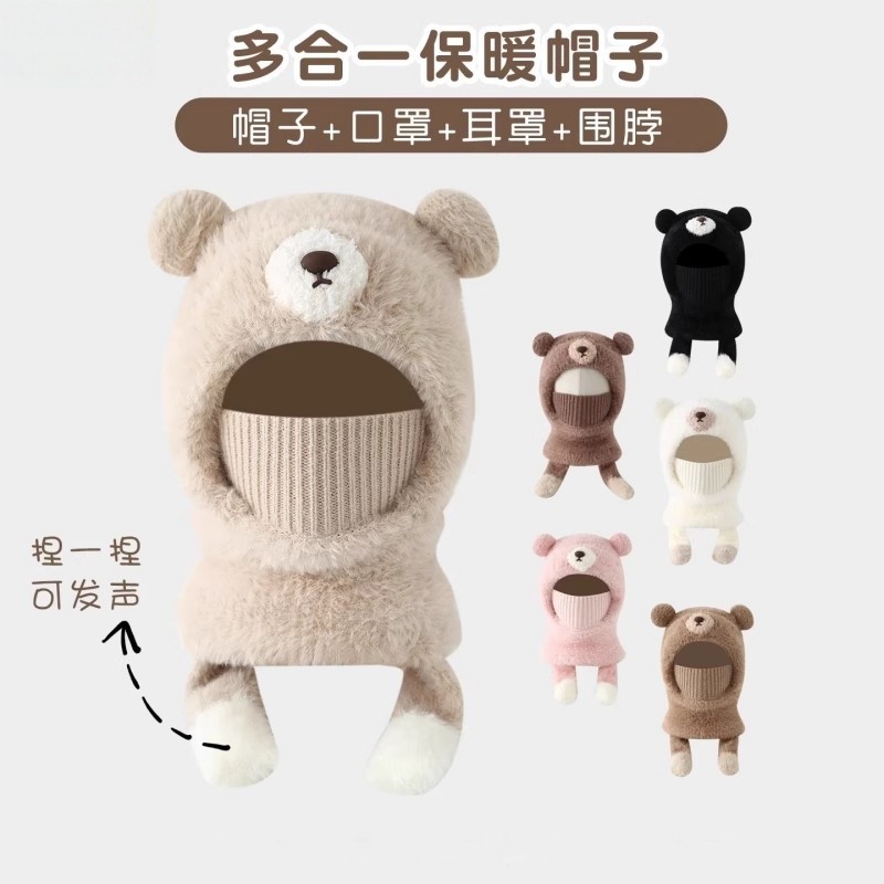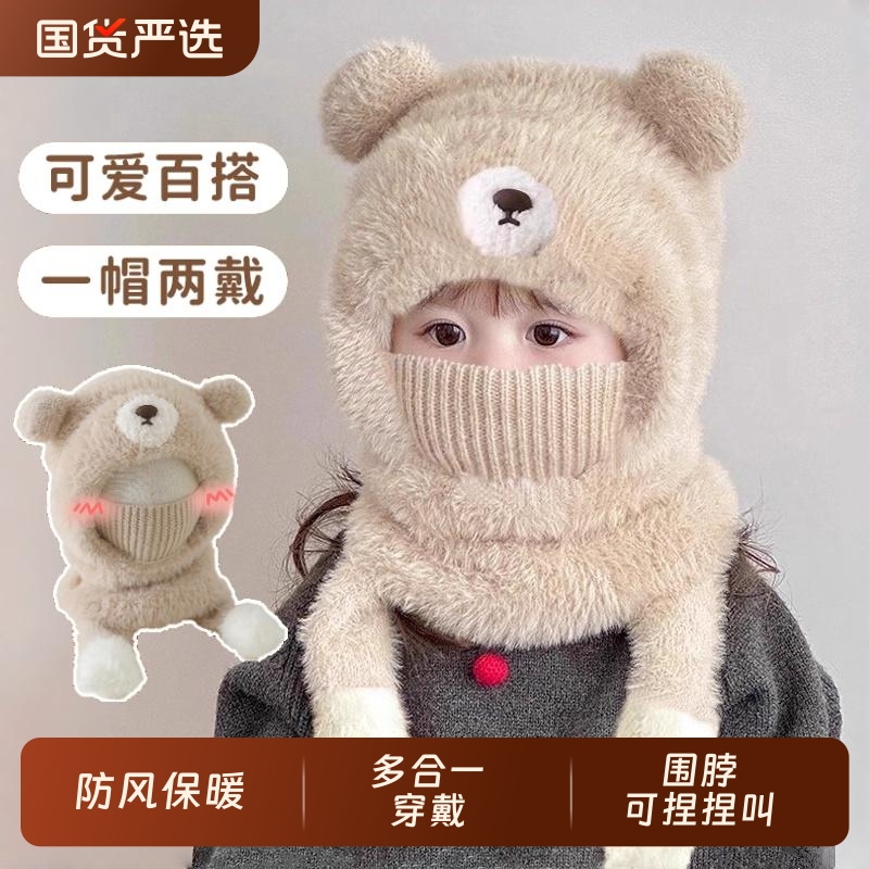 儿童帽子秋冬一体帽子围脖口罩会叫三件套男女童厚款宝宝加绒保暖