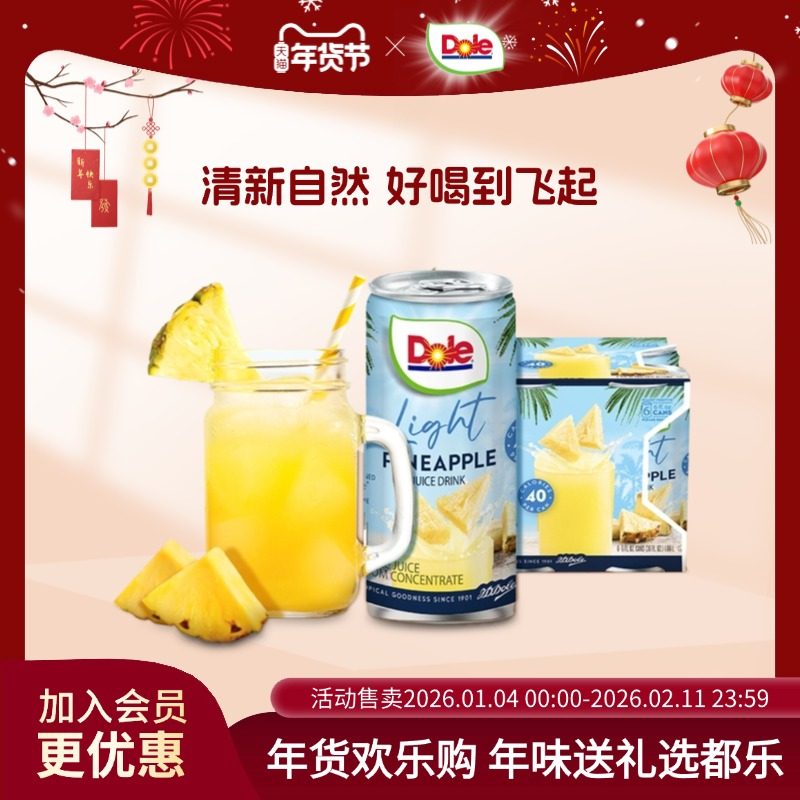 dole都乐菲律宾进口轻甜菠萝汁177ml*6罐/提 0脂肪果汁饮料饮品