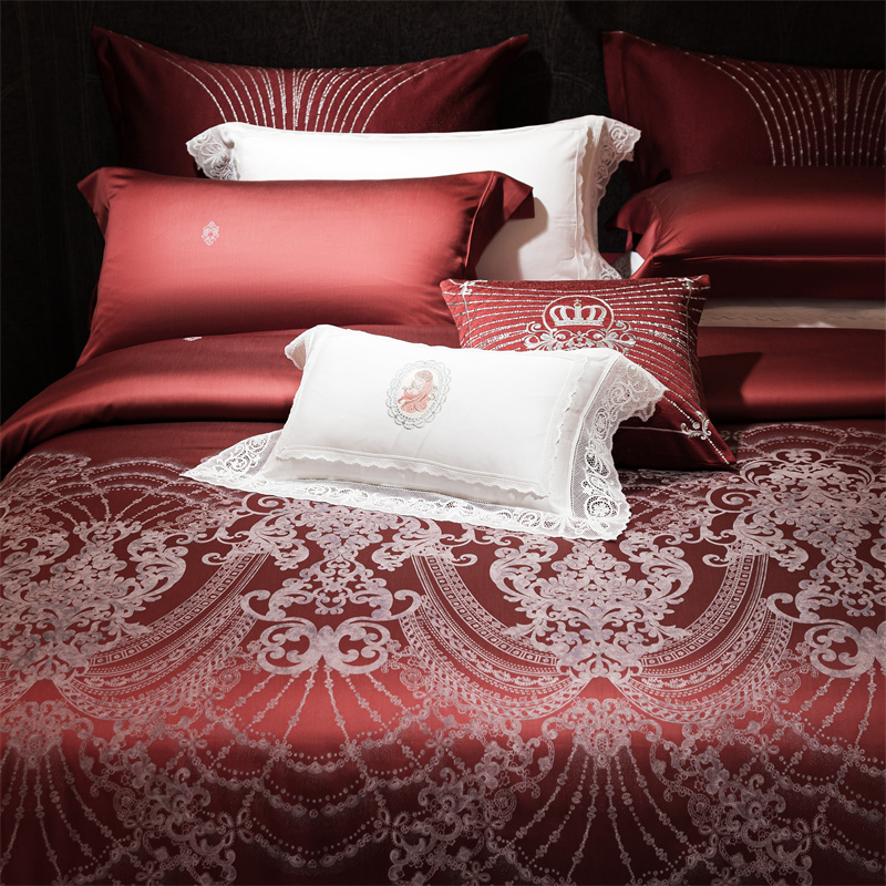 卡诗兰顿160S匹马棉四件套全棉色织提花床上用品套件高奢婚庆床品