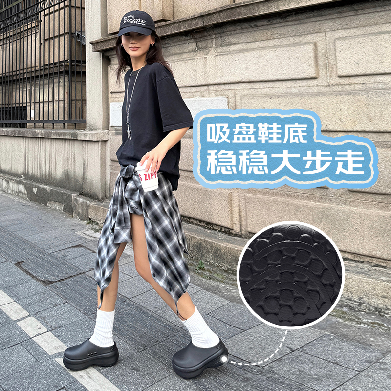 骆驼女鞋2026春季新款洞洞鞋半拖厚底防滑增高户外包头凉拖鞋外穿