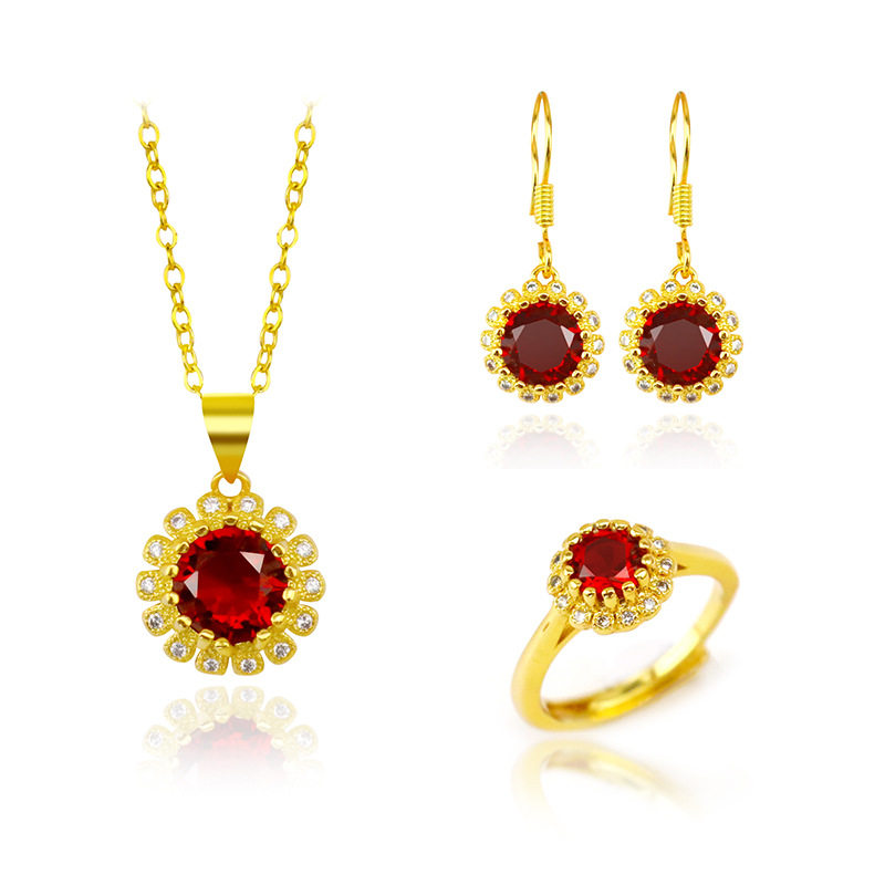 锡金小雏菊宝石足金戒指越南沙金女款宝石微镶镀黄金套装项链耳钉