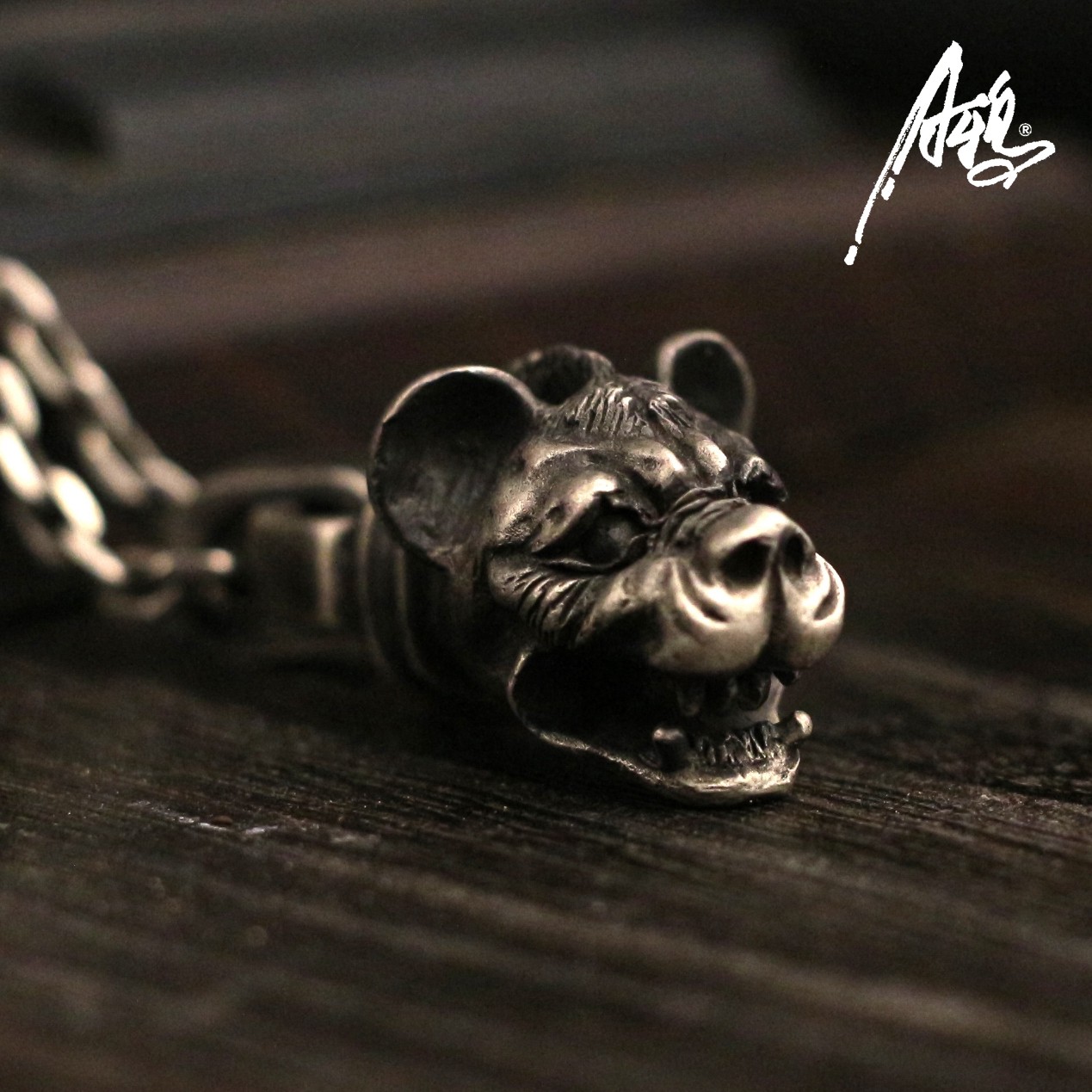 A鸦个性重致原创手工定制复古鬣狗头太角项链925纯银男女士吊坠