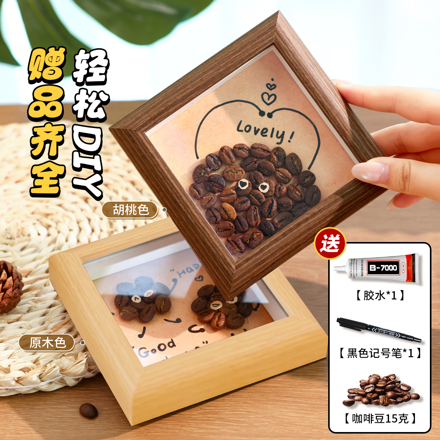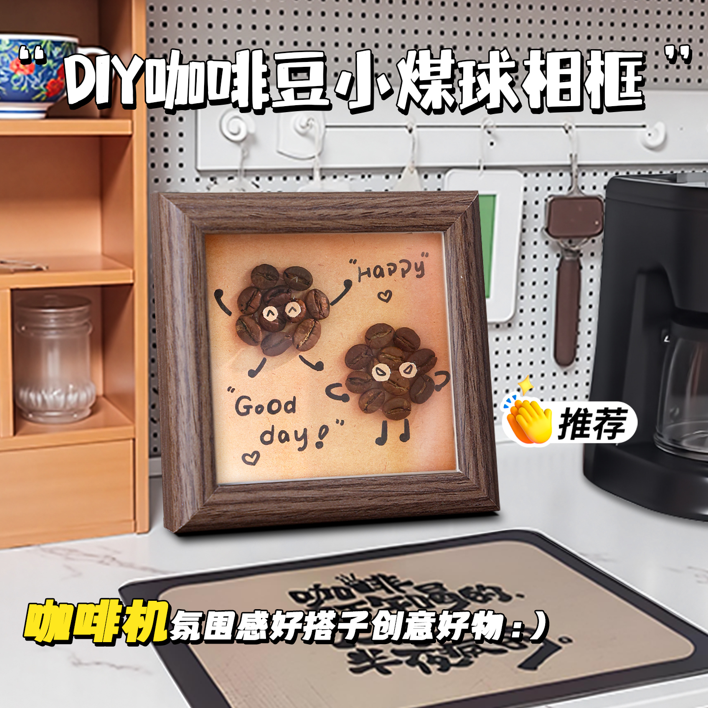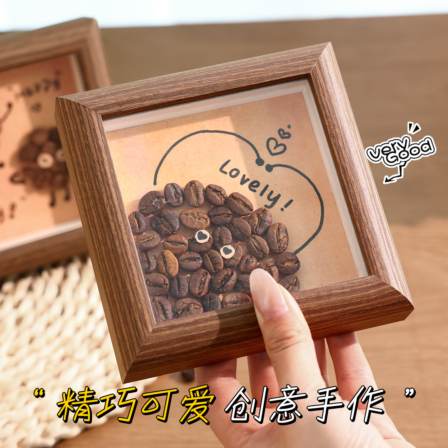 咖啡豆相框diy摆件创意咖啡店画框家居客厅电视柜桌面装饰品摆台