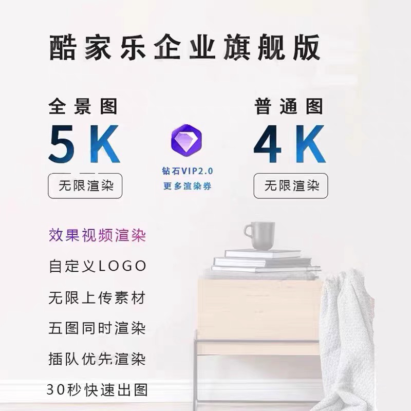 酷家乐企业版一个月铂金账号整装全屋定制无限渲染平面图4K全景5K