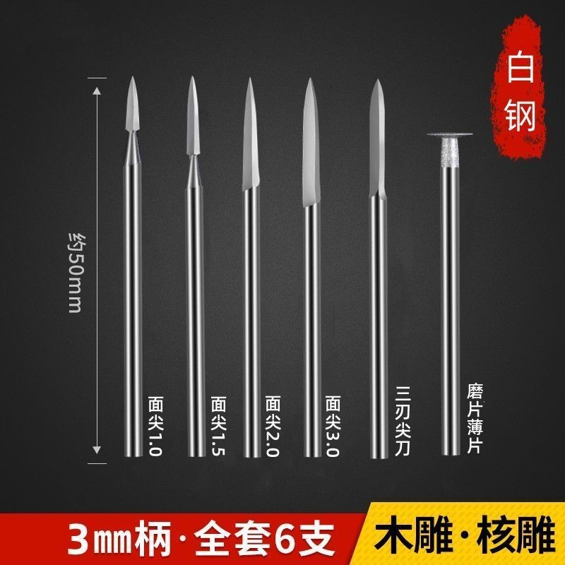 电动核雕木雕雕刻工具套装牙机刻刀头白钢钻头磨头木工划线宝剑刀