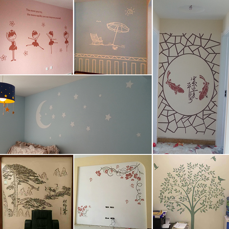 定做硅藻泥印花模板刻图贝壳粉艺术漆半全透阴阳刻花画背景墙墙贴