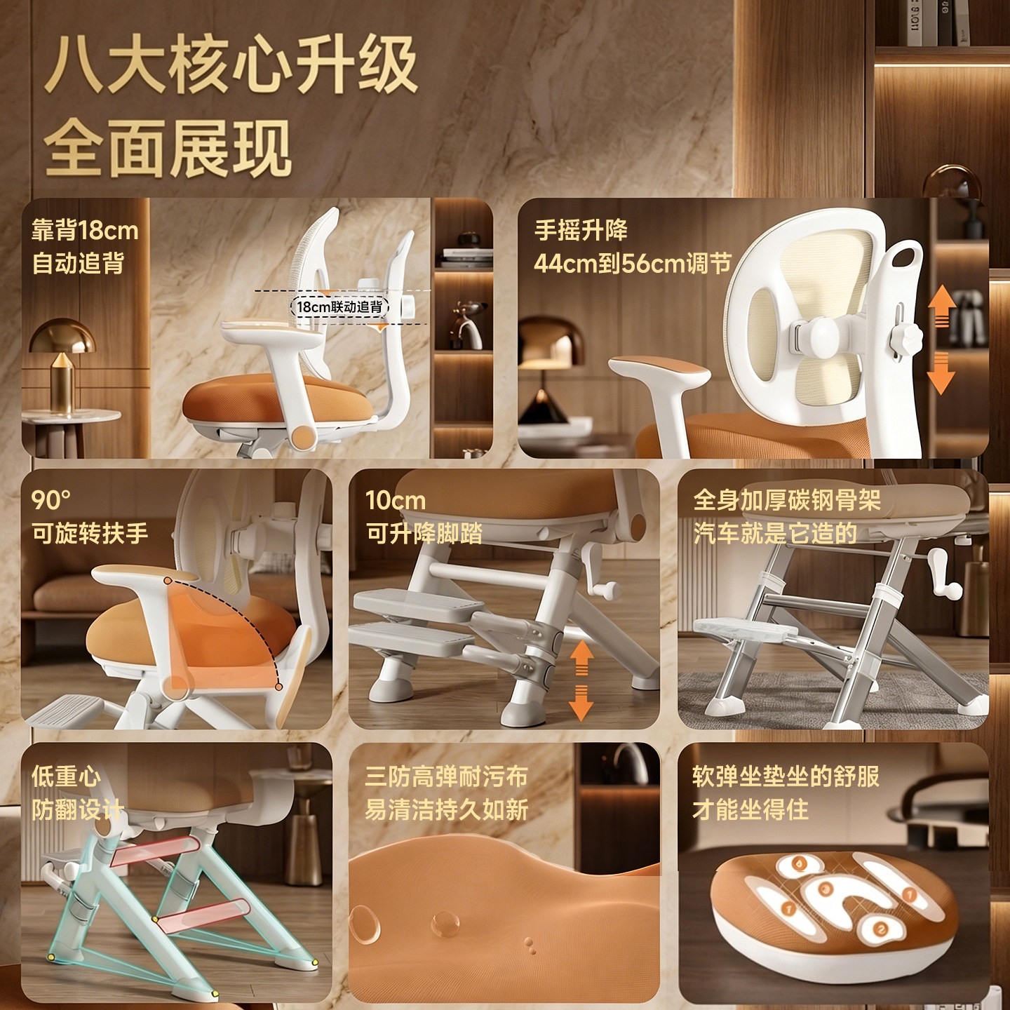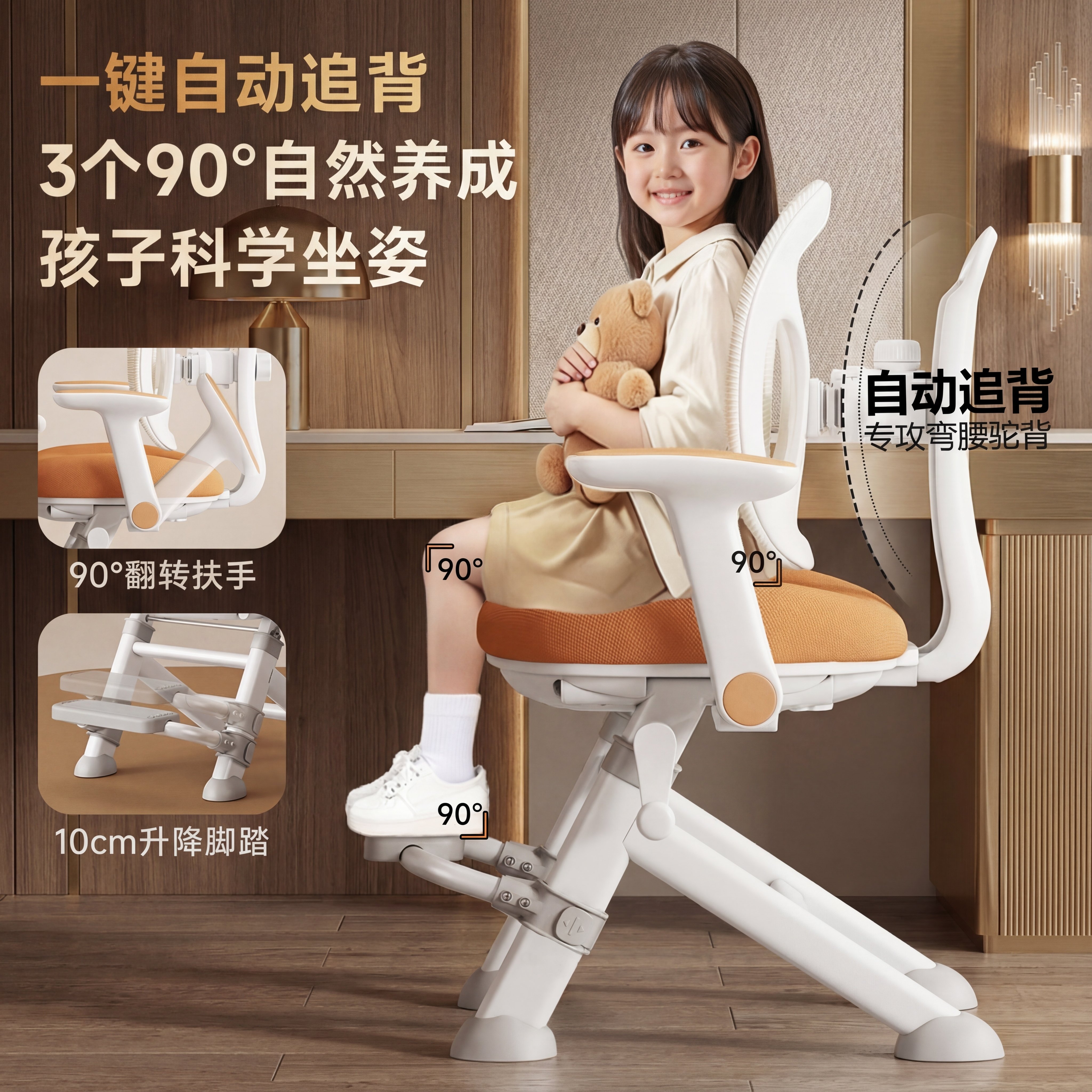 【央妈力荐】可米恋儿童学习椅子自动追背可升降调节写字座椅凳子