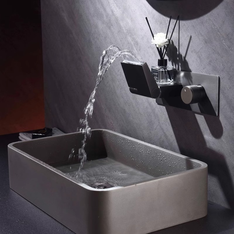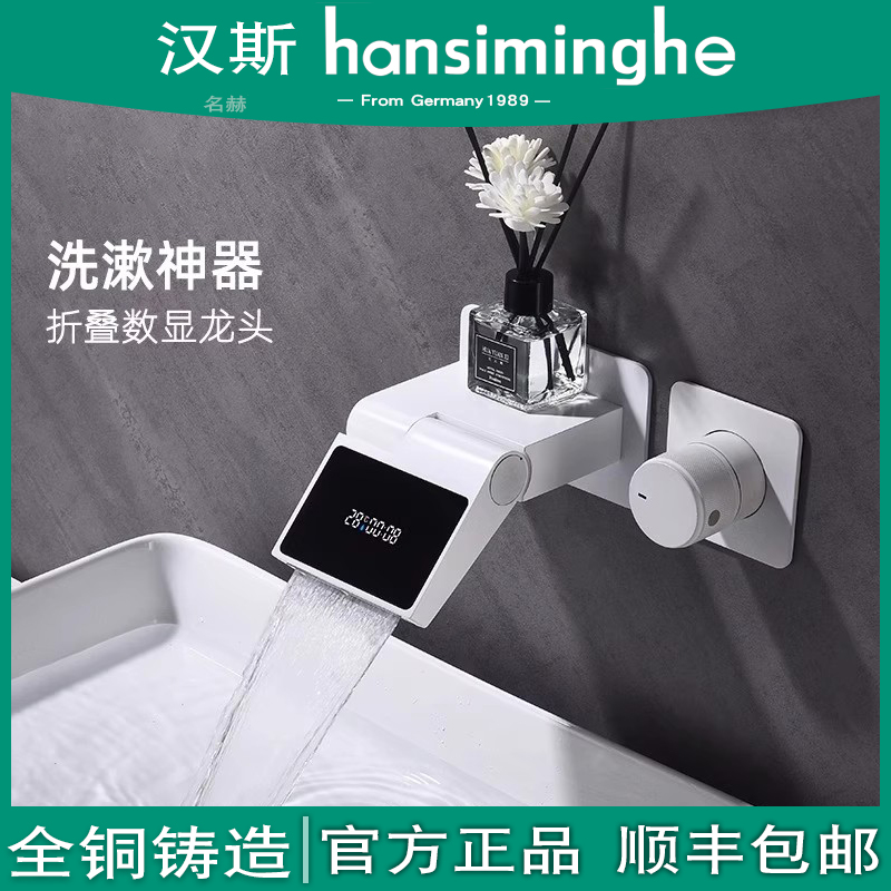 汉斯hansiminghe全铜数显瀑布水嵌入式暗装卫生间面盆冷热水龙头