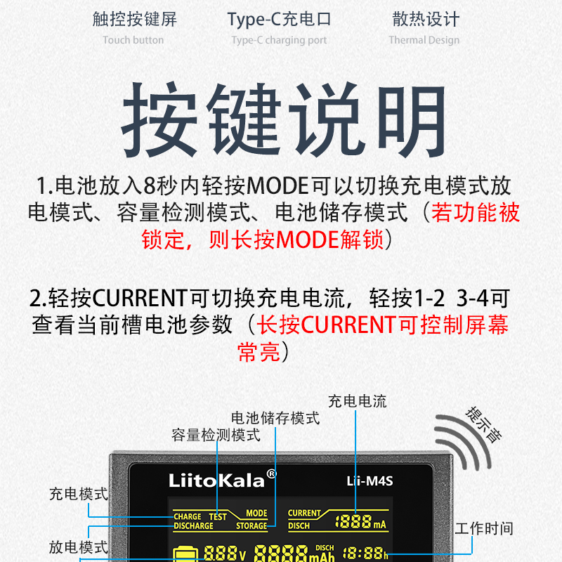 Lii-M4S 8槽18650锂电池充电器26650容量内阻217005号手电筒头灯
