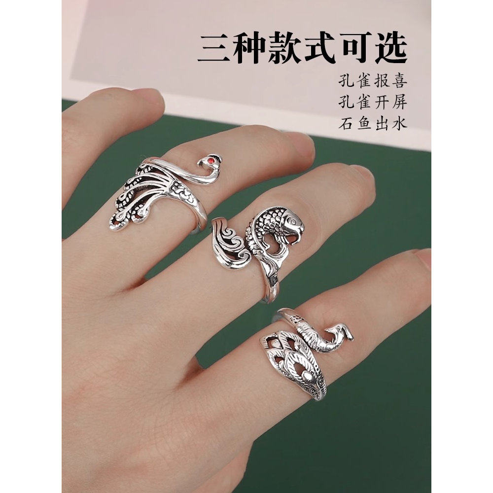 毛线钩织带线器复古创意孔雀开口戒指女民族风钩针指环戒环神器