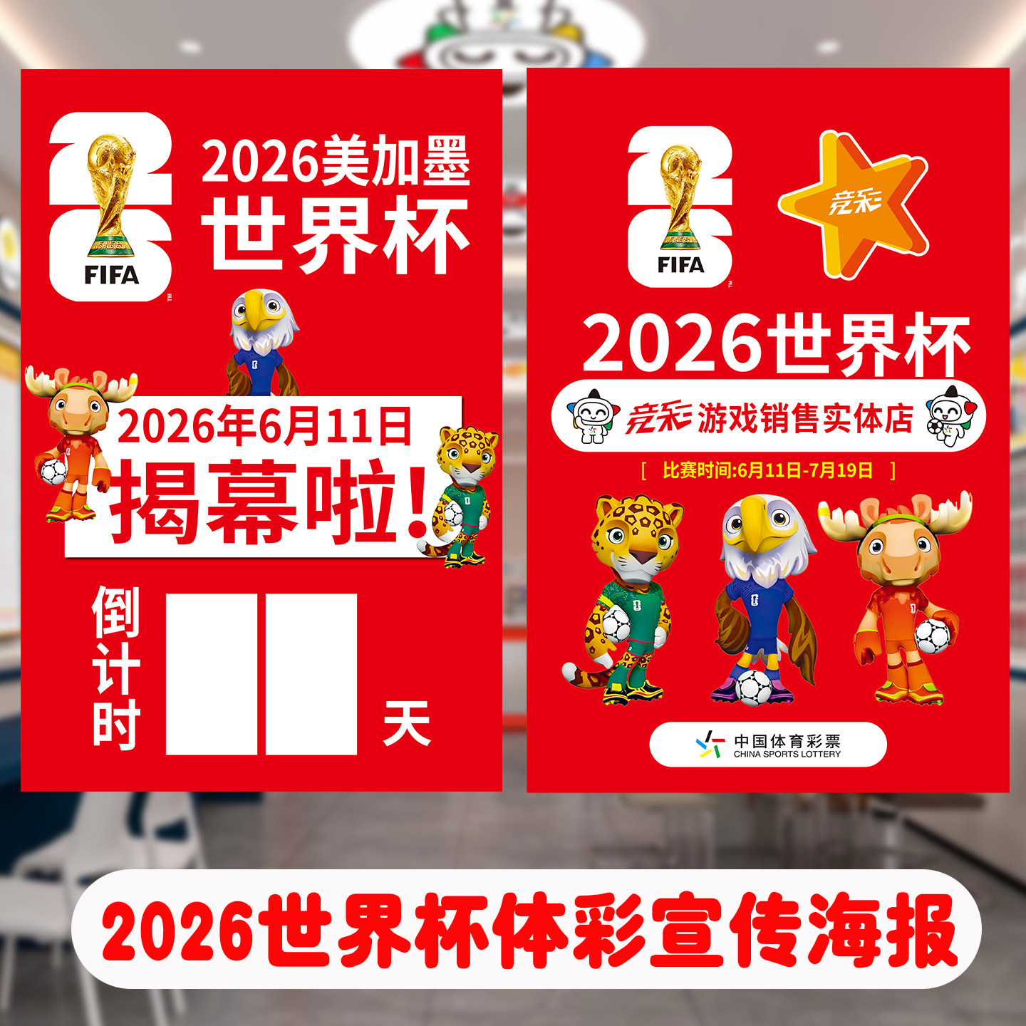 2026美加墨世界杯主题海报倒计时体彩店彩票店宣传物料本店开售