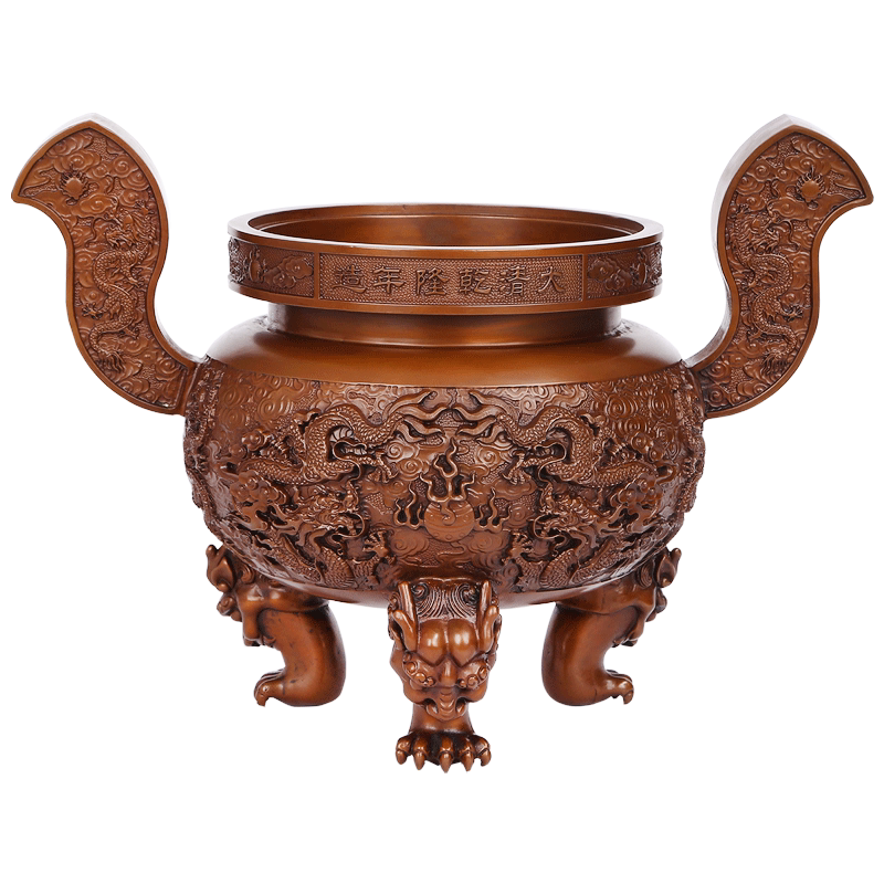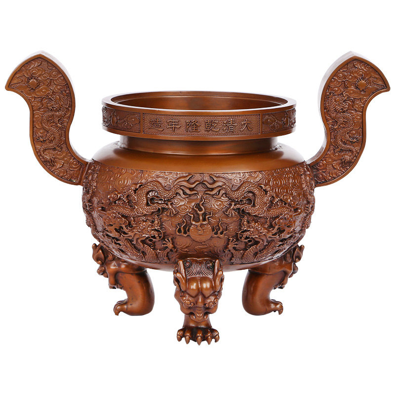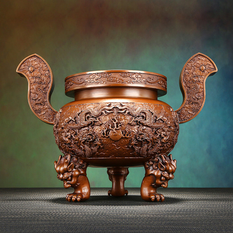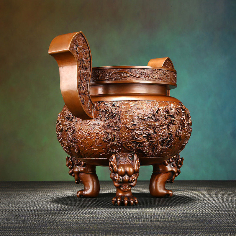 紫铜祥龙纹香薰炉三足鼎香炉冠耳香炉五供炉家居装饰品摆设