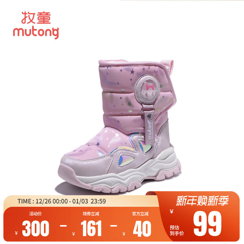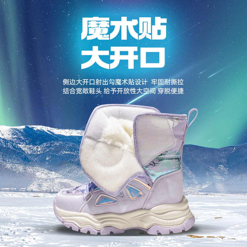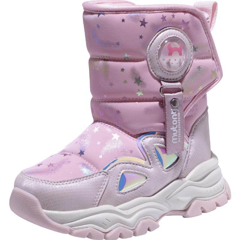 牧童女童雪地靴冬季东北冰爪加绒保暖时尚儿童大棉靴加厚防水童鞋