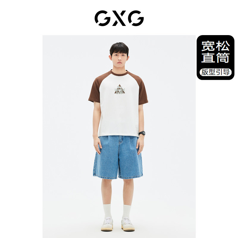 GXG男装 短裤牛仔裤直筒版浅蓝色23年夏季新品GE1250897D