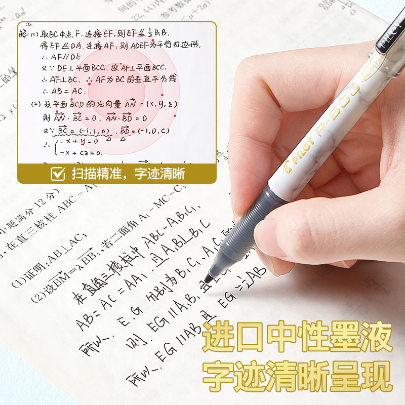 日本PILOT百乐笔P500中性笔考试专用中小学生刷题笔P-500针管式走珠笔水笔0.5学生用黑色官方正品大容量