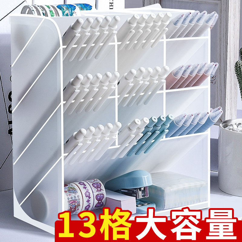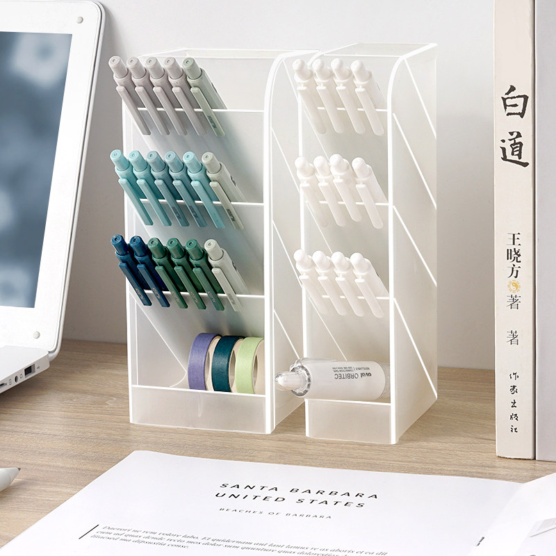 亚克力笔筒办公室桌面收纳盒学生透明斜插式笔桶笔架多功能创意简约风格时尚大容量文具笔盒桌面儿童女男孩D1