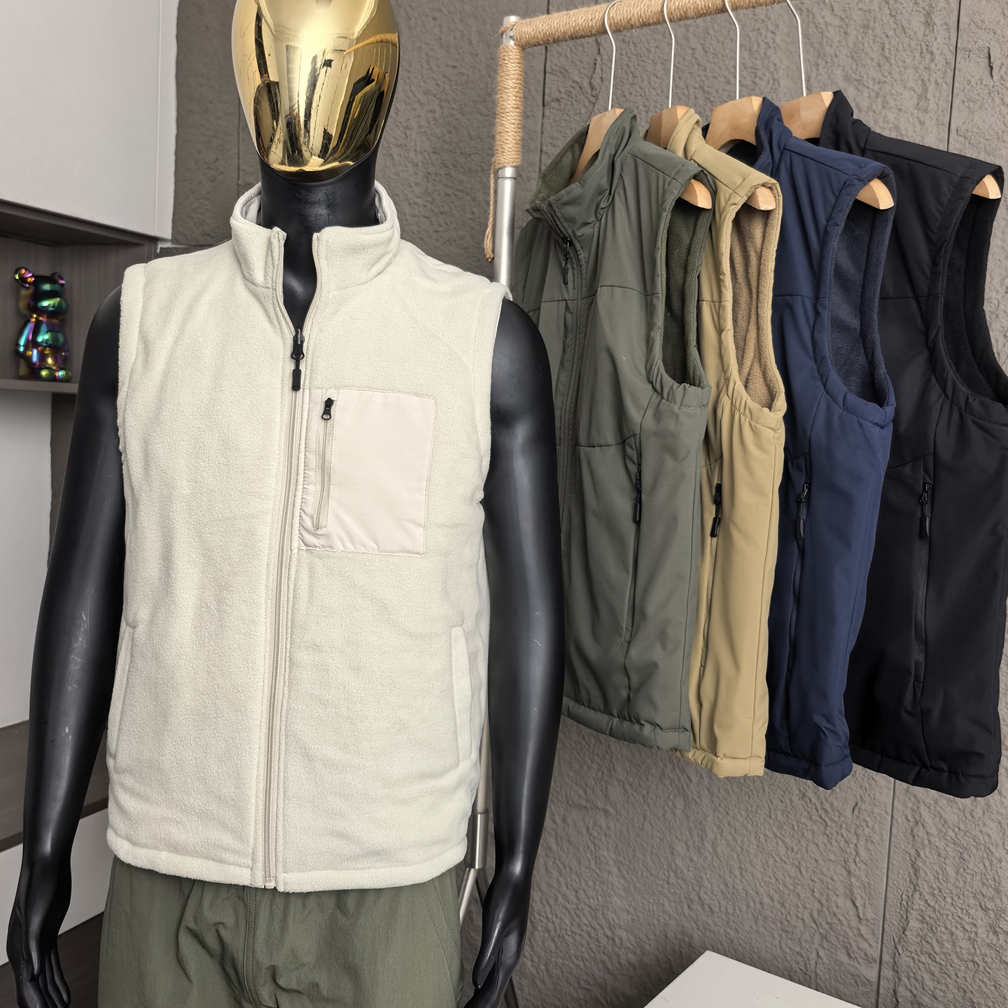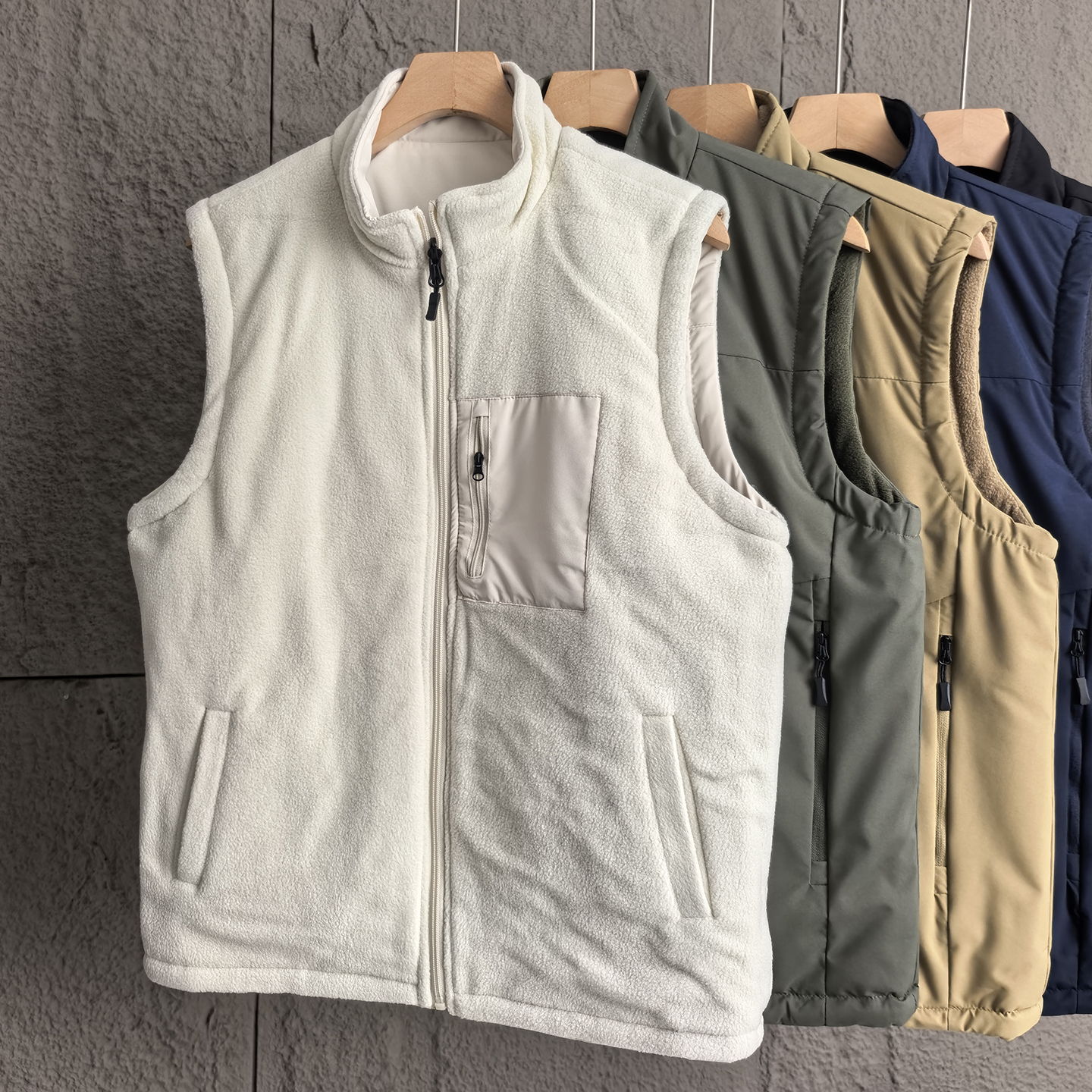双面可穿!美式休闲秋冬男士摇粒绒立领加厚防风保暖马甲背心外套