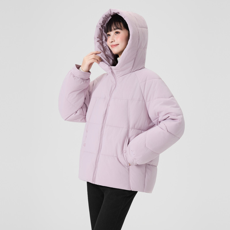 快鱼棉服女2025年冬季新款微宽松净色连帽外套防寒保暖加厚小棉袄