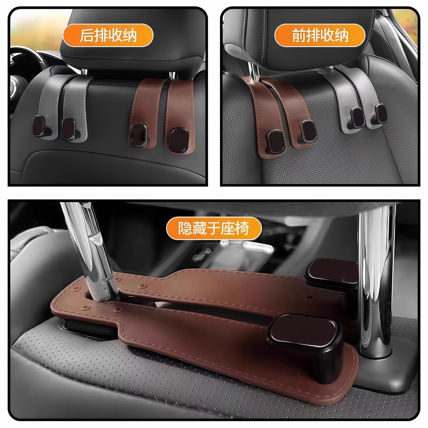 车载座椅背手机支架小汽车挂钩翻毛皮汽车隐藏式金属挂钩储物钩
