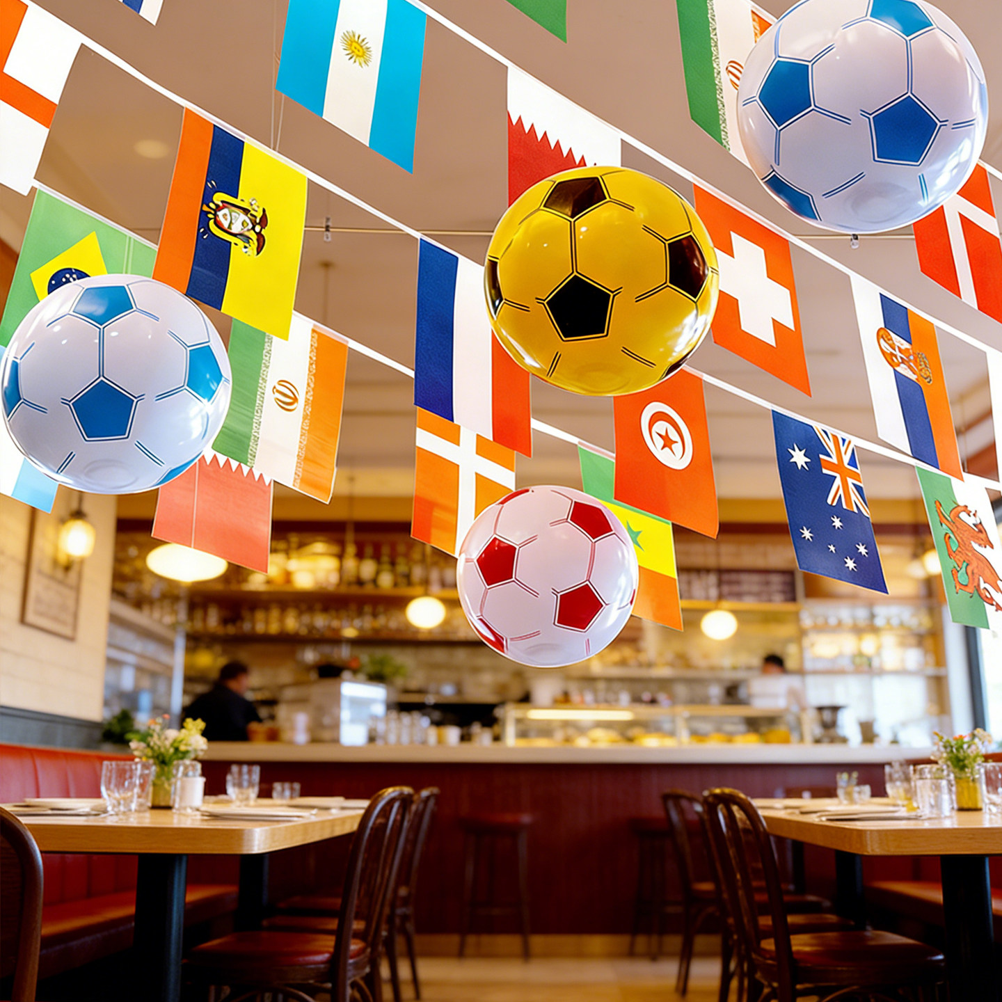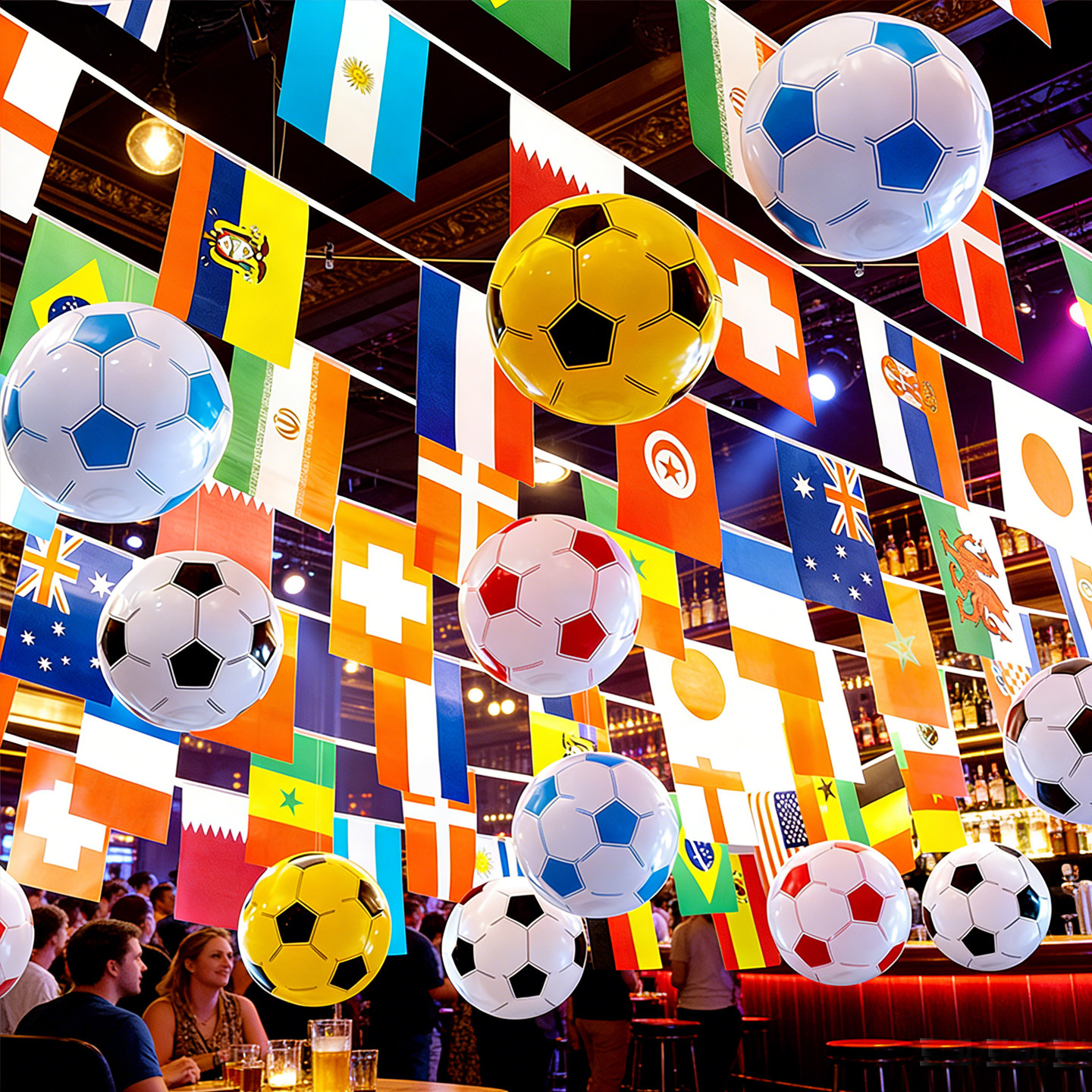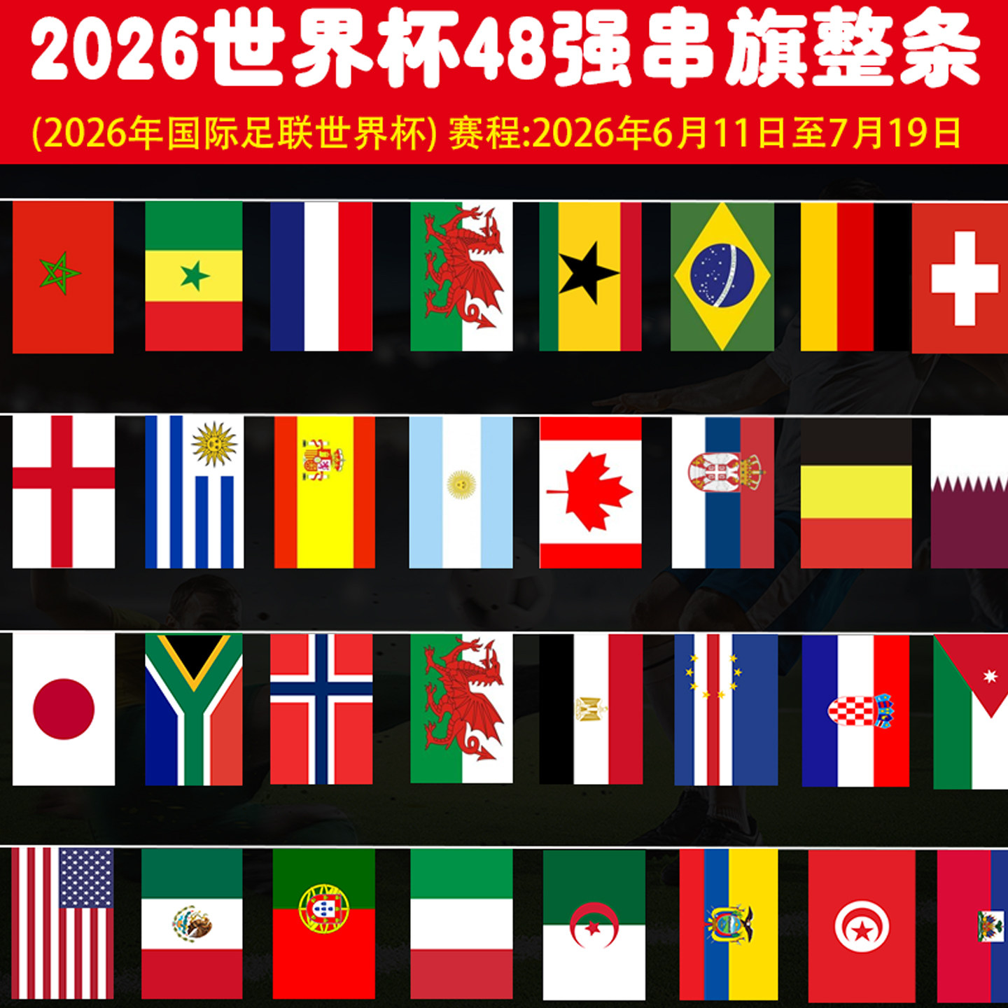 2026年美加墨世界主题装饰杯48强串旗体彩彩票店酒吧门店布置吊旗