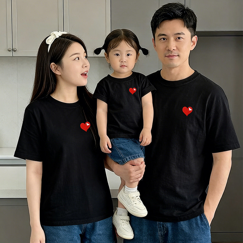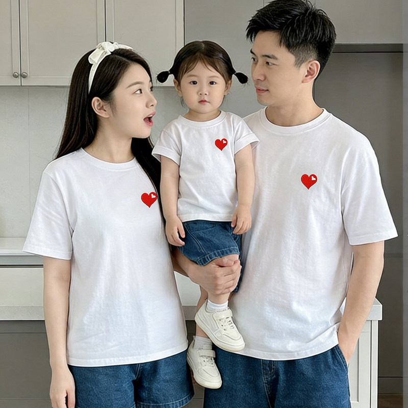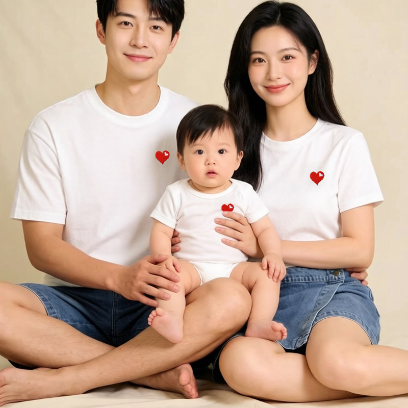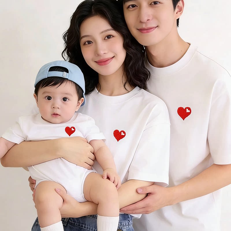 立体刺绣婴儿亲子装夏T恤一家三口四口小月龄满月百天拍照全家福