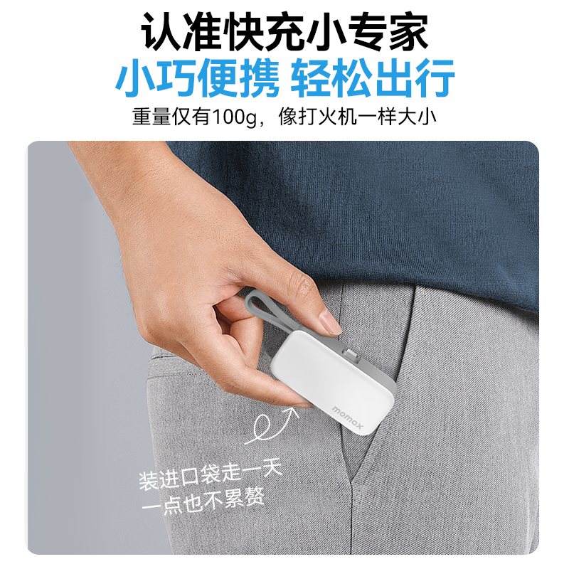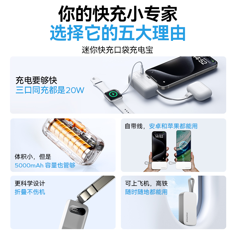 【3C认证可上飞机】MOMAX摩米士2025新款口袋充电宝小5000毫安自带线快充迷囊小巧便携移动电源适用苹果17