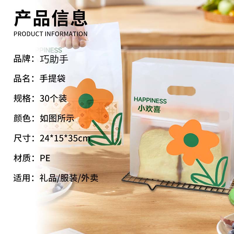 手提袋甜品袋元旦新年礼品袋打包袋伴手礼包装购物袋烘焙包装30个