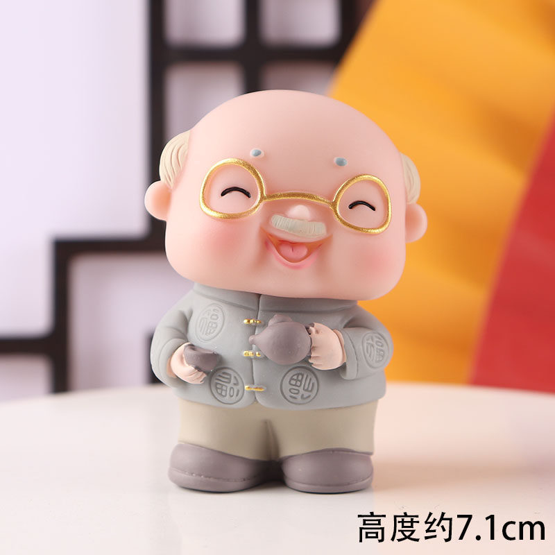 祝寿蛋糕装饰茶壶老爷爷抱猫老奶奶唐装寿星公婆蛋糕摆件插牌插件