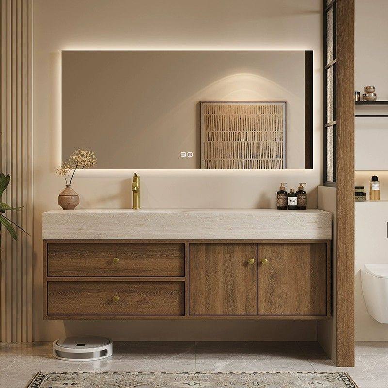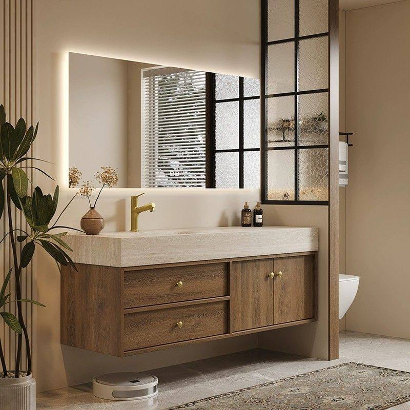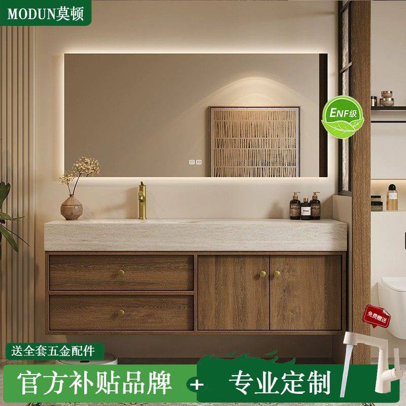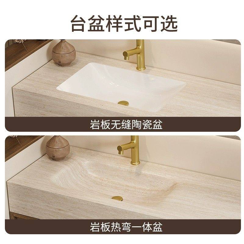 莫顿中古风岩板热弯一体盆浴室柜组合卫生间洗漱台洗手盆定制复古