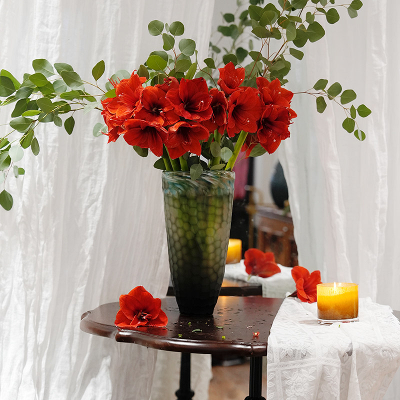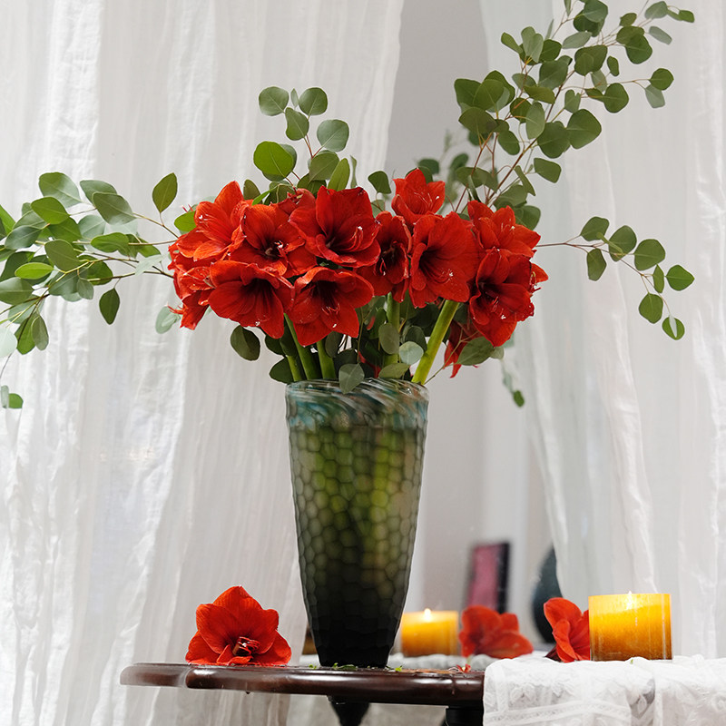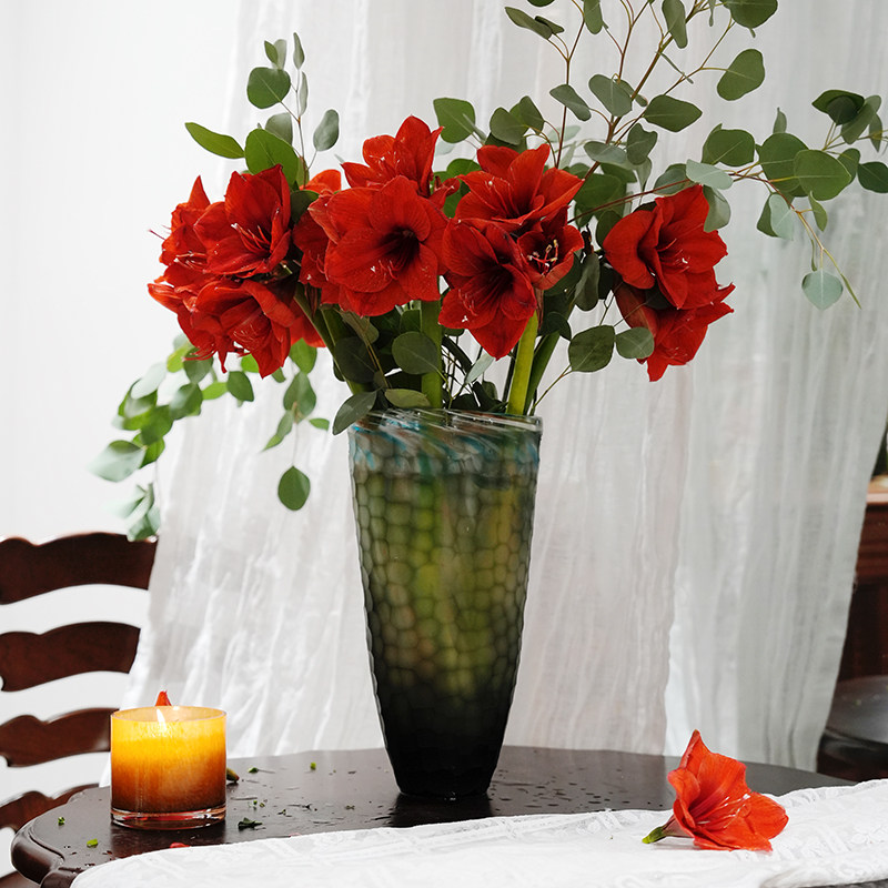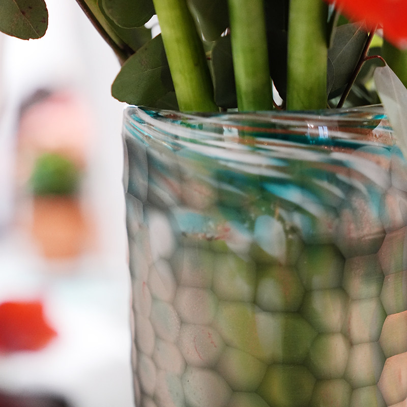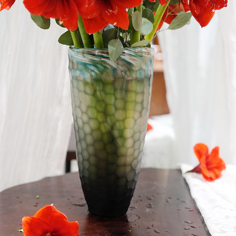 烟灰蓝双色手工雕刻水立方琉璃花瓶16*13*33cm装饰摆件13414-330