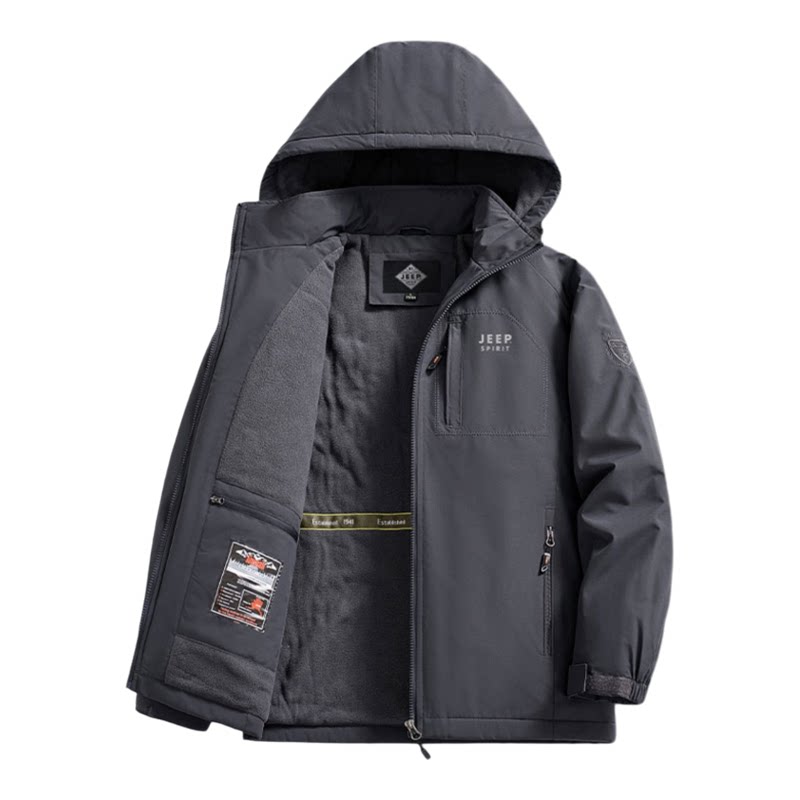 吉普加绒棉衣男士冬季保暖新款宽松爸爸男装棉服加厚休闲运动外套