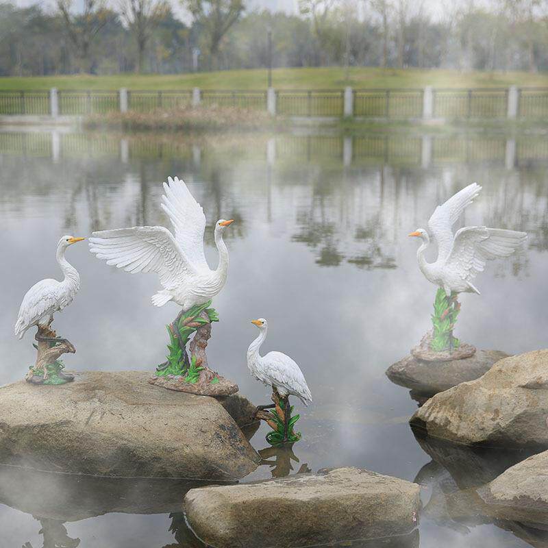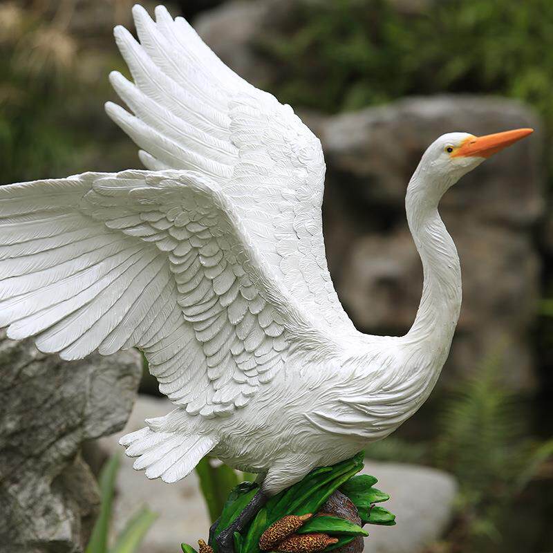 户外花园仿真白鹭玻璃钢摆件家居庭院水池假山树脂雕塑落地装饰品