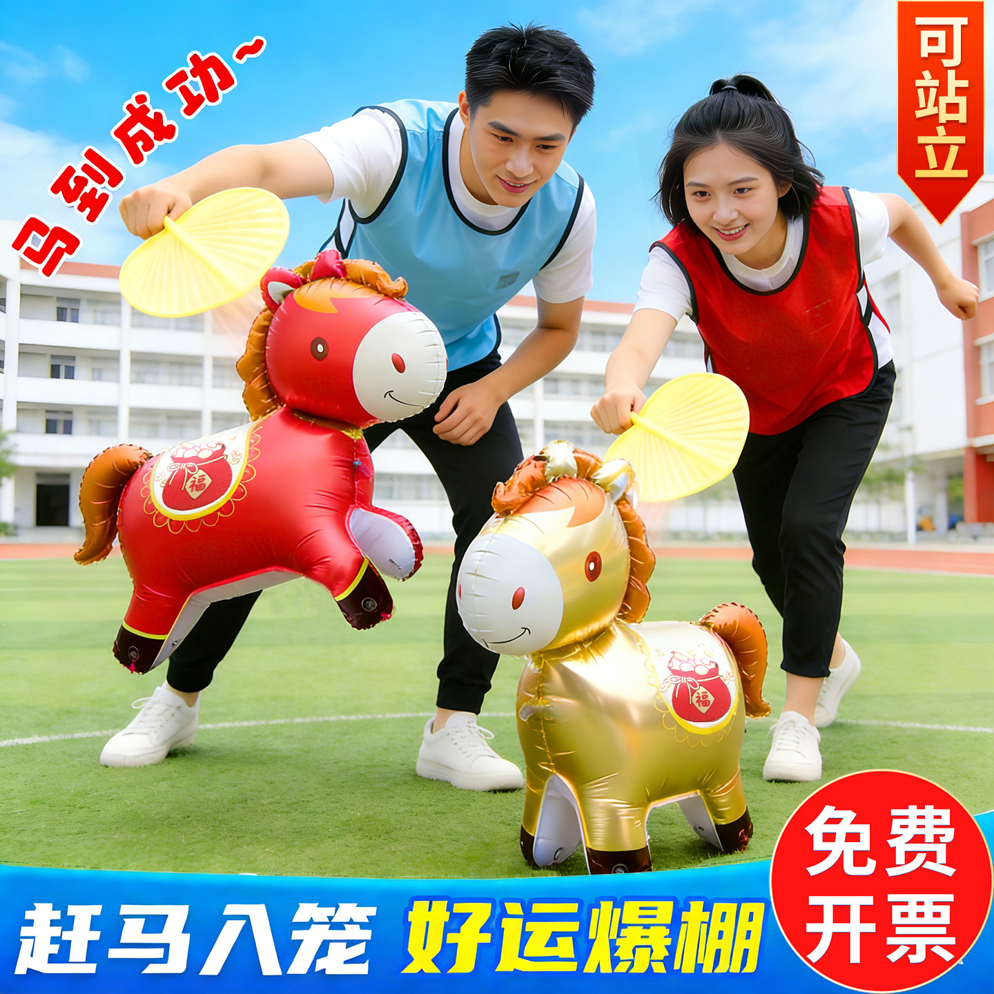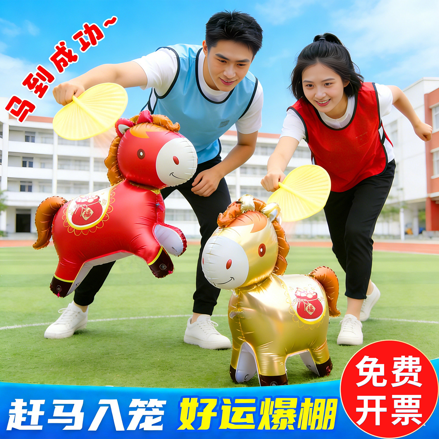 赶马入笼厩气球三八节游戏道具搞笑马年造型赶鸡扇子团建活动室内