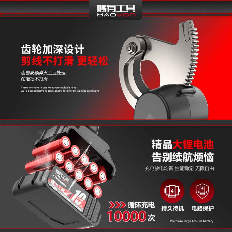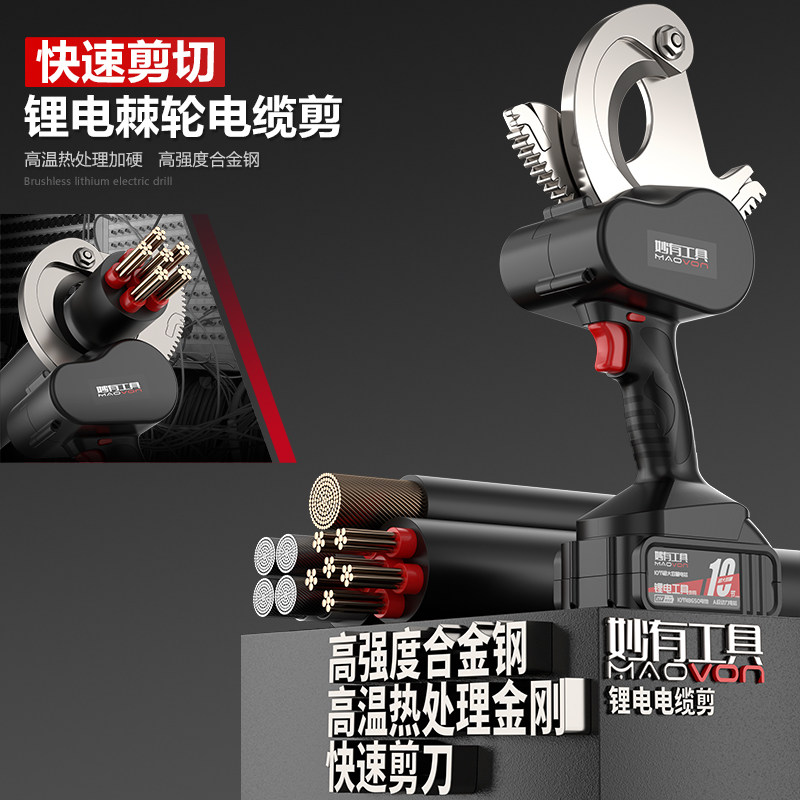 电动棘轮电缆剪液压锂电充电钢芯铜铝铠装线缆剪线钳专用齿轮剪刀