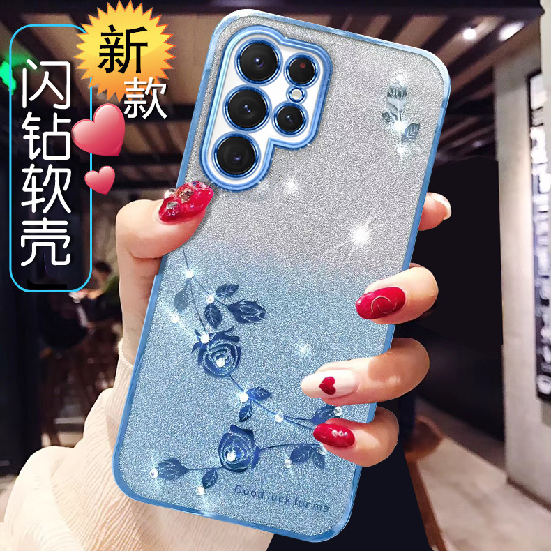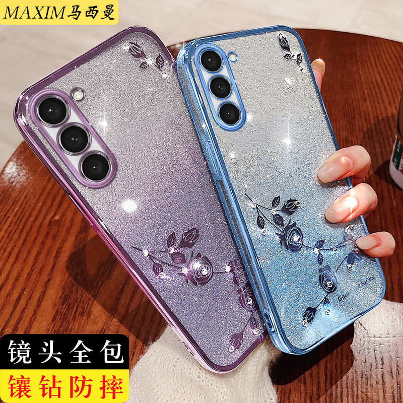 闪钻渐变三星S23Ultra手机壳新款s24十镜头全包防摔Galaxy高级感s22女款软外壳s22紫色s24+Ultra网红潮硅胶套