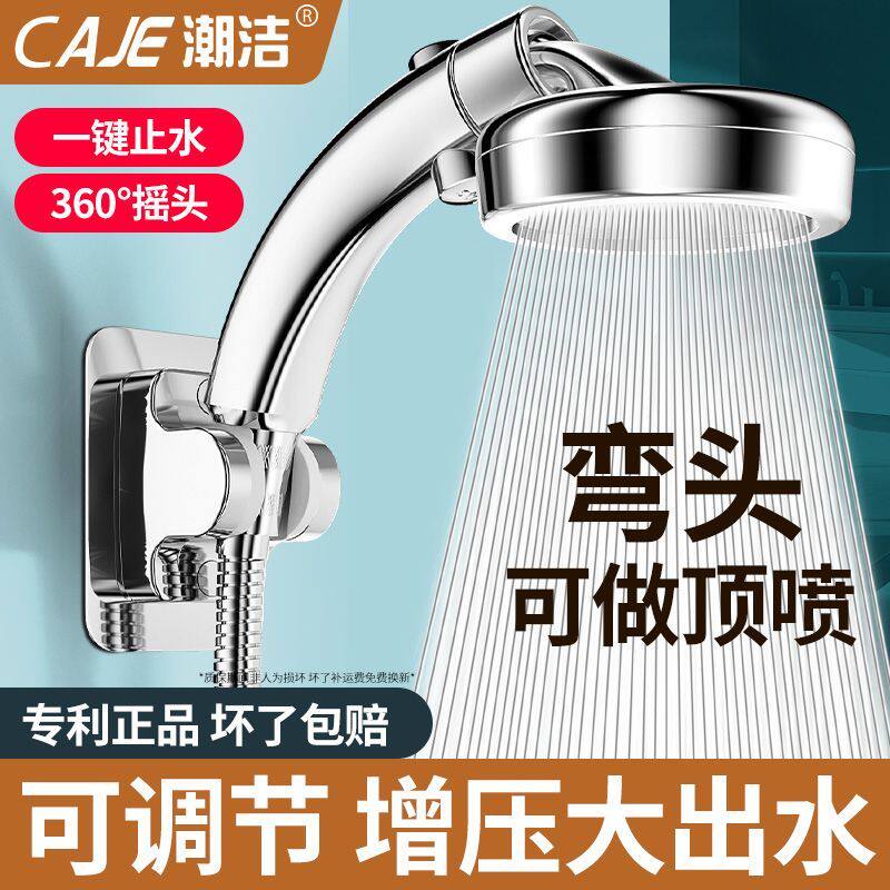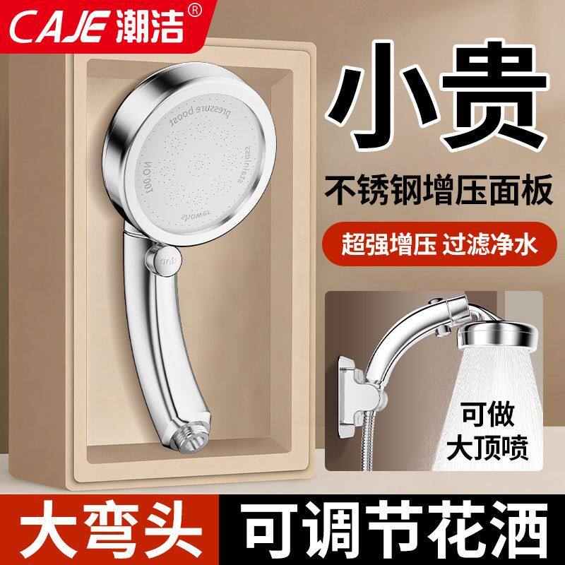 潮洁可调节增压花洒淋浴喷头浴室洗澡神器加压大出水量弯头莲蓬头