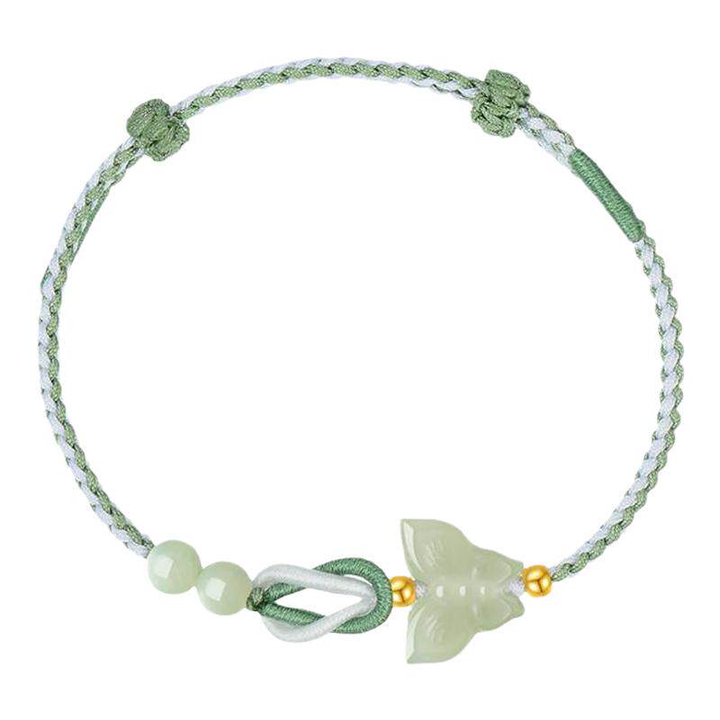 周大生黄金镶玉手链女和田玉蝴蝶四叶草手串新年礼物送女朋友高级