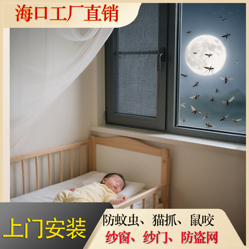 防蚊纱窗海南海口不锈钢金刚纱网防虫蚊家用推拉纱窗铝合金防护栏
