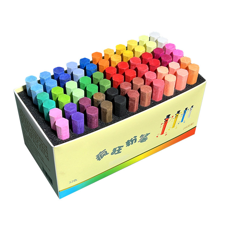 疯狂粉笔彩色黑板报专用颜色鲜艳显色无尘无毒儿童绘画教学教师专用非水溶性白色多色家用32色批发小蛋糕六角