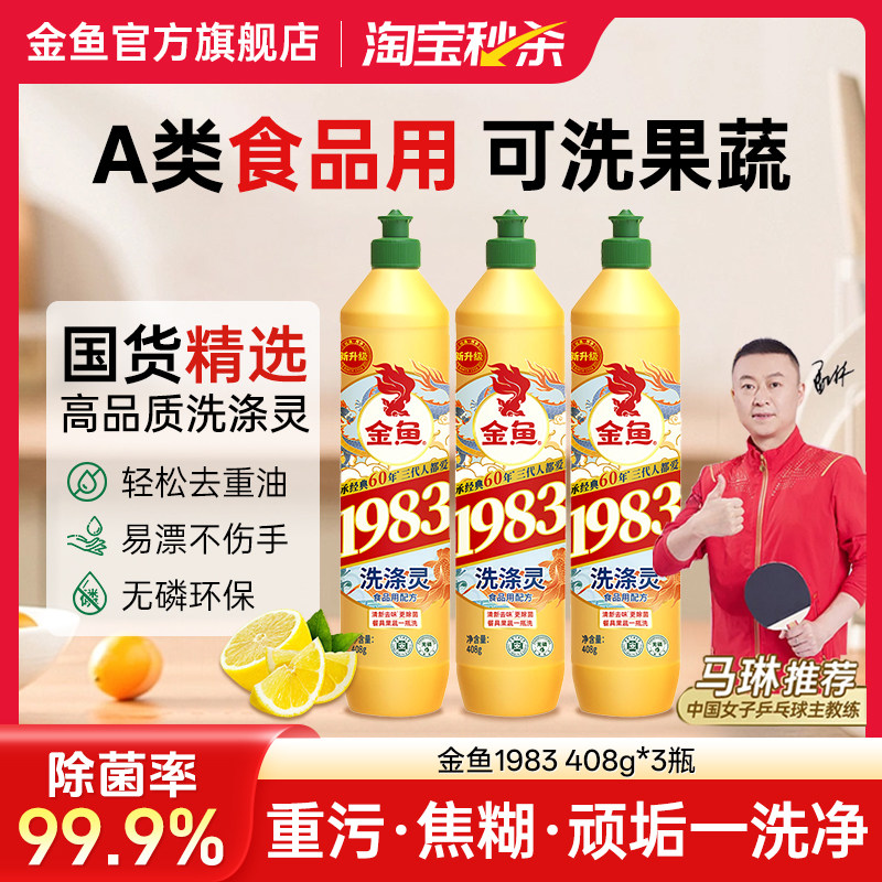 金鱼洗涤灵408g*3瓶洗洁精去油渍强去污厨房餐厅实惠装温和不刺激