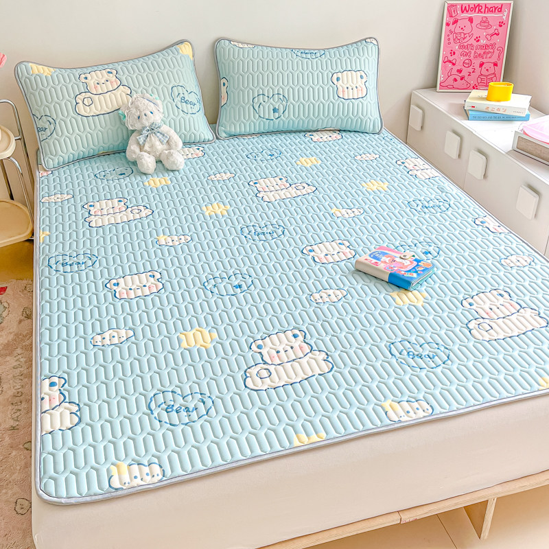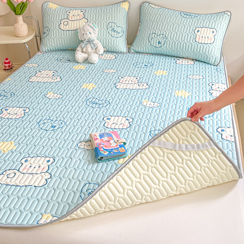 新款乳胶凉席夏季可水洗软席子夏季冰丝床单枕套三件套冰丝席
