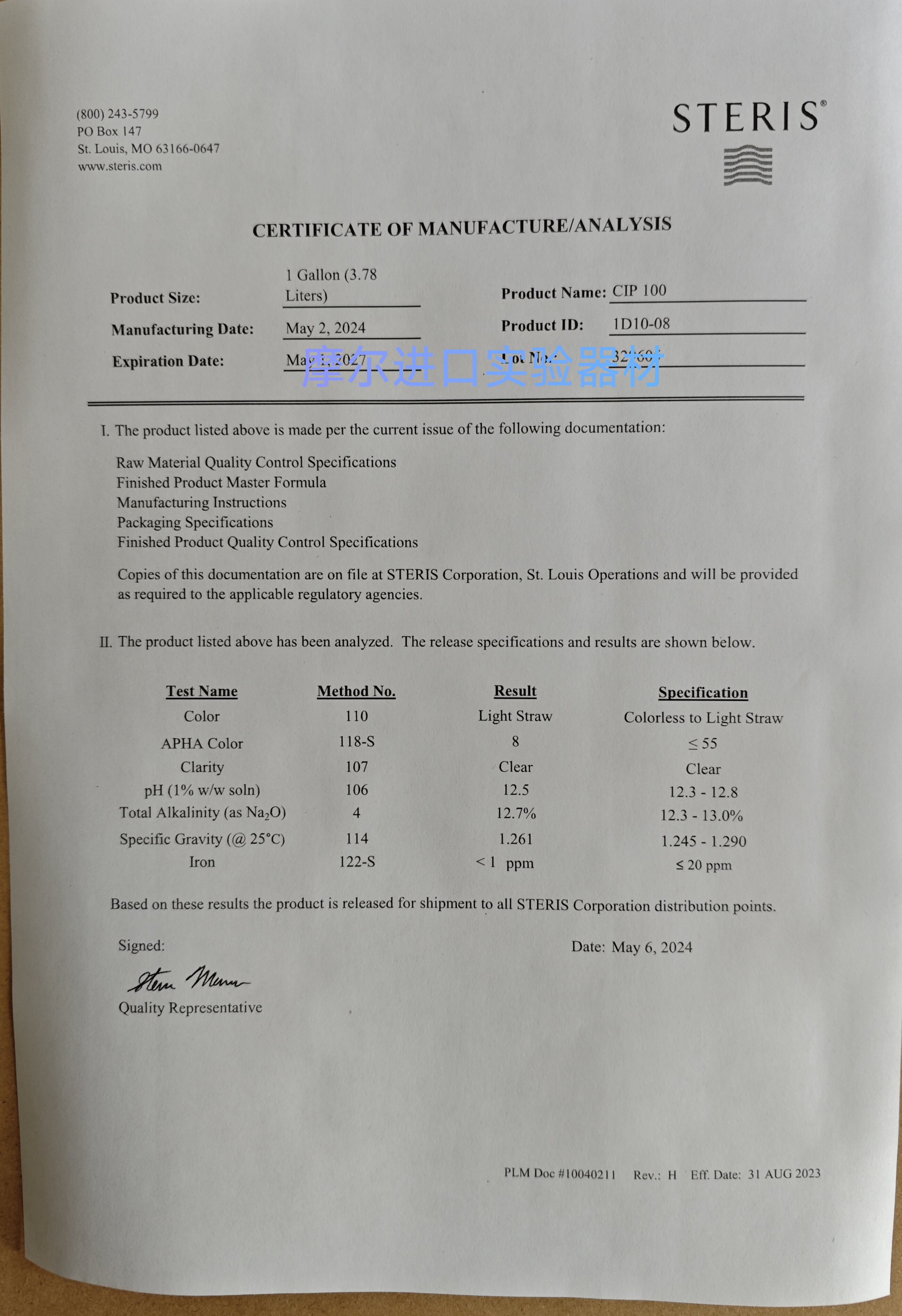 美国思泰瑞Steris CIP100碱性清洗剂 KOH基洗涤 原位清洁1D1008