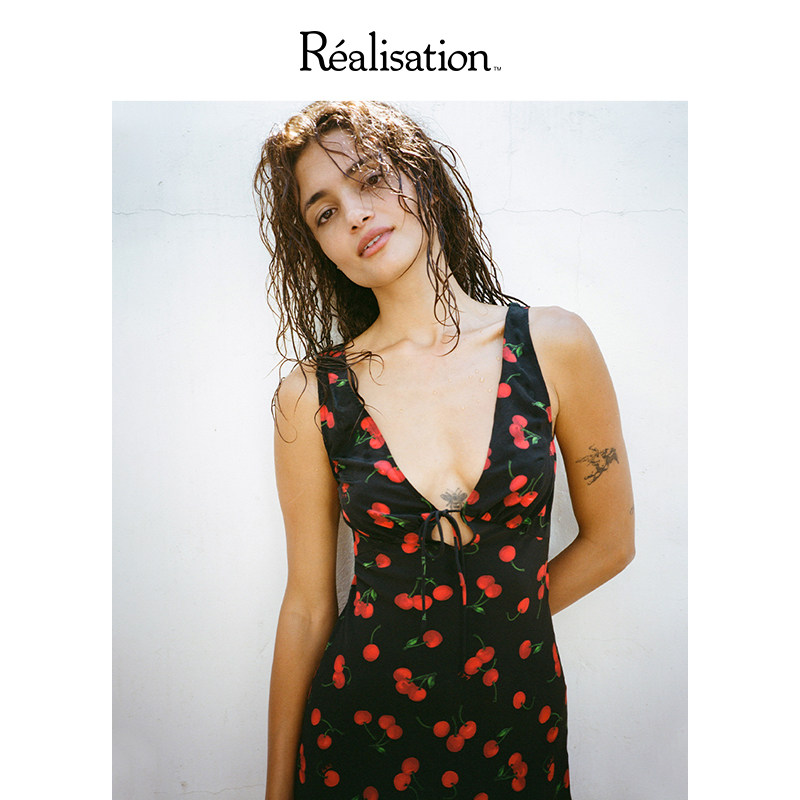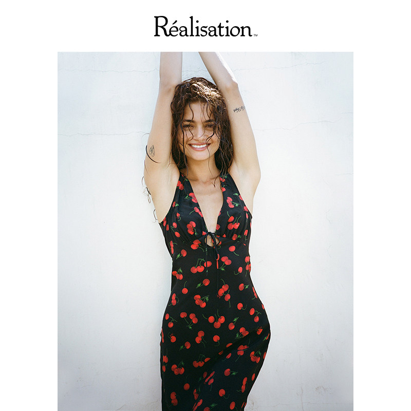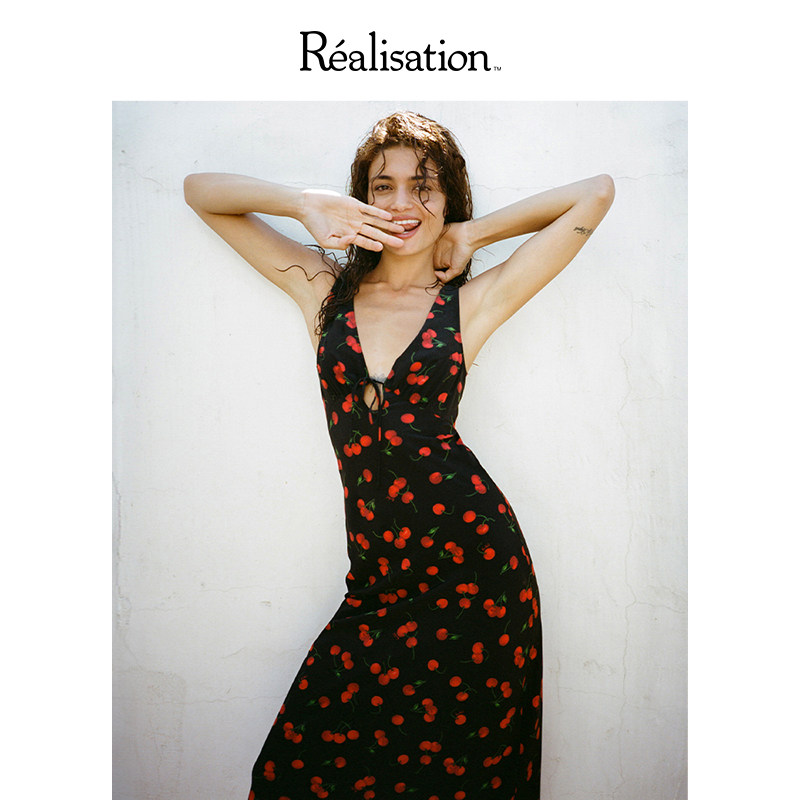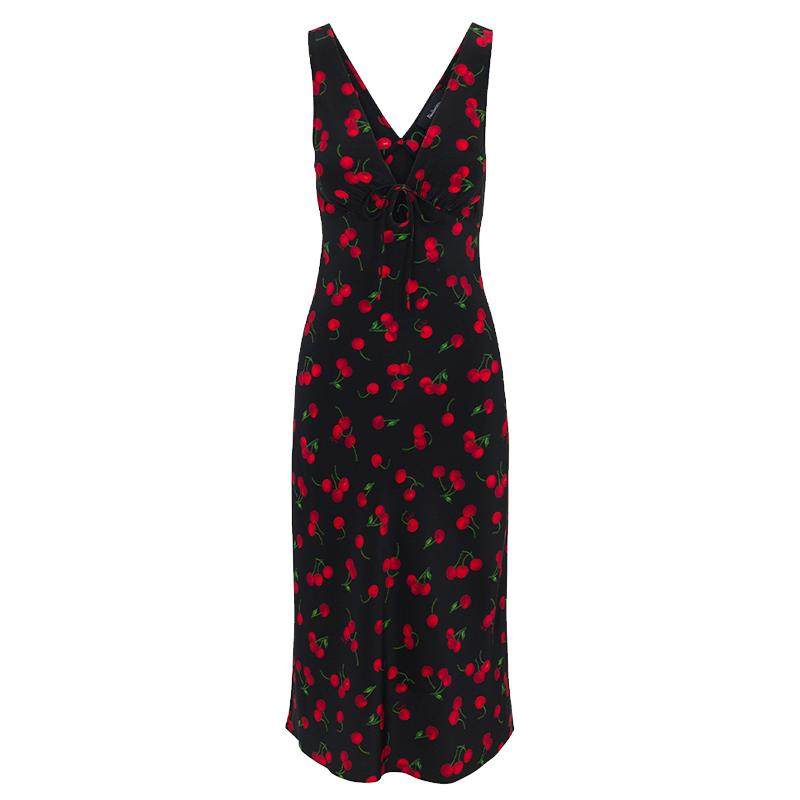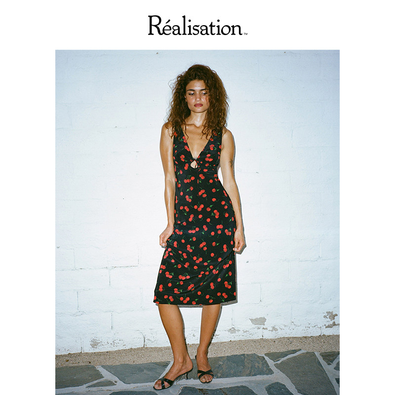RealisationPar 连衣裙黑色樱桃真丝中长裙 The Scarlet