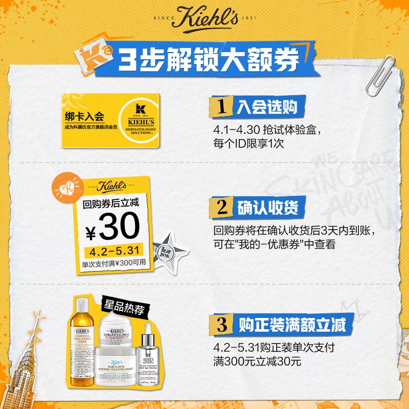 科颜氏金盏花乳液高保湿面霜旅行装控油体验装回购券满300减30元