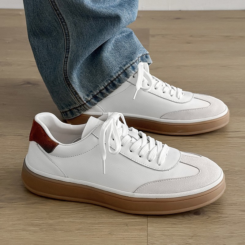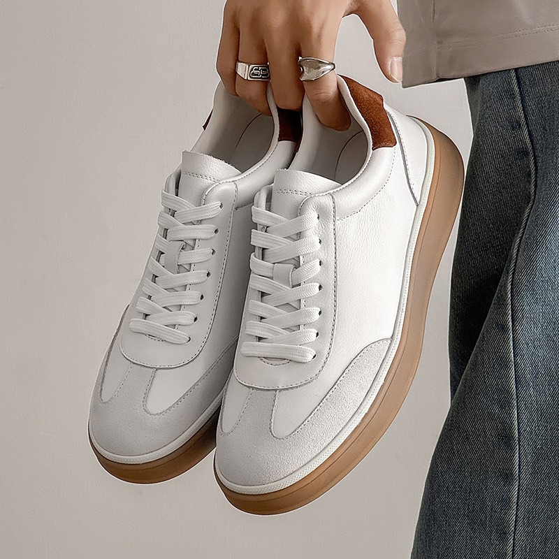 德训鞋男头层牛皮软底软面高级感运动休闲板鞋商务休闲小白鞋男鞋