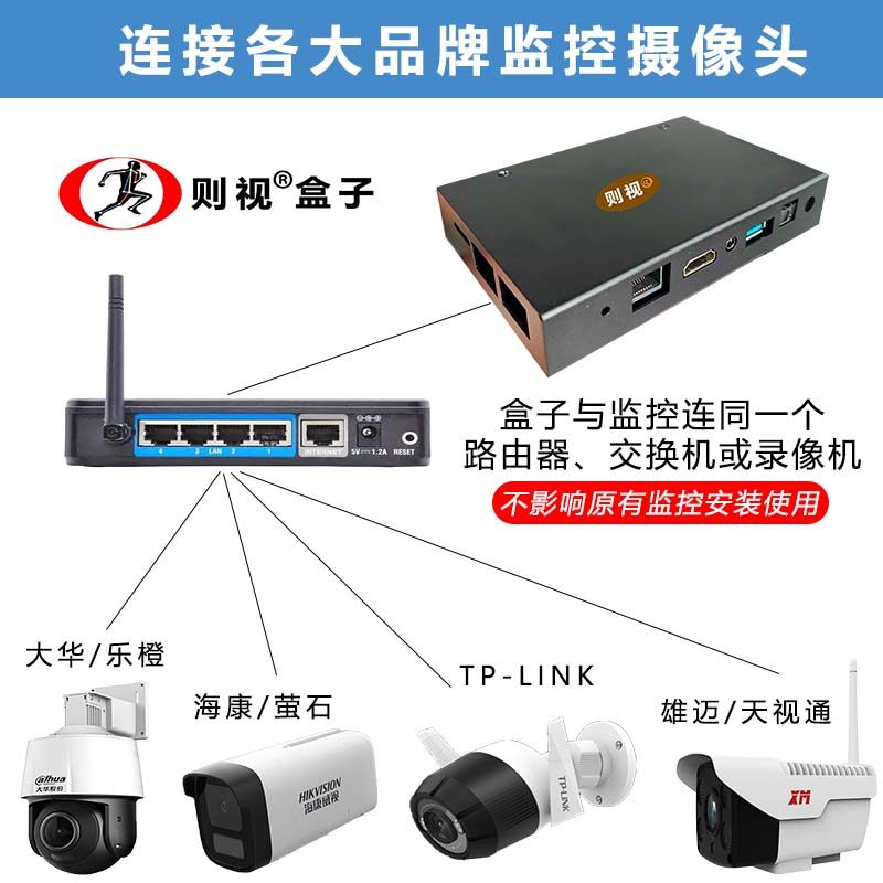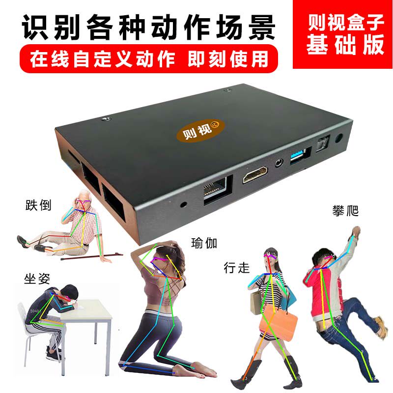 则视人工智能边缘计算AI智慧盒子火柴人动作姿态接多路监控标准版