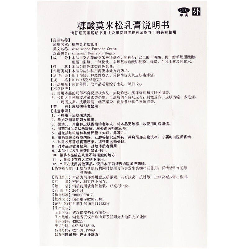 包邮】嘉效糠酸莫米松乳膏15g 湿疹神经性皮炎皮肤瘙痒症药膏外用