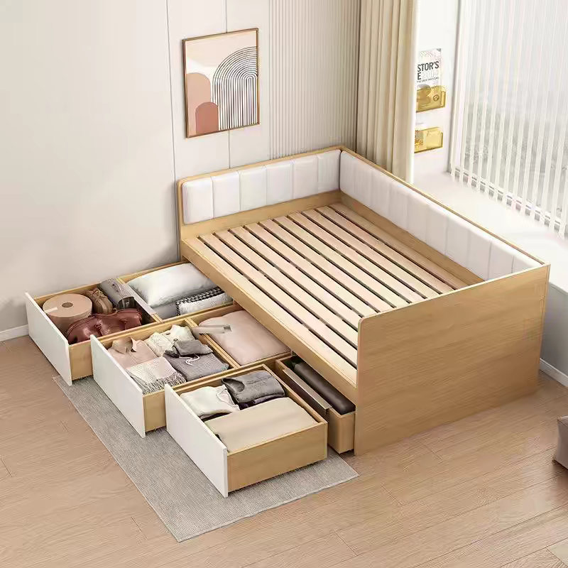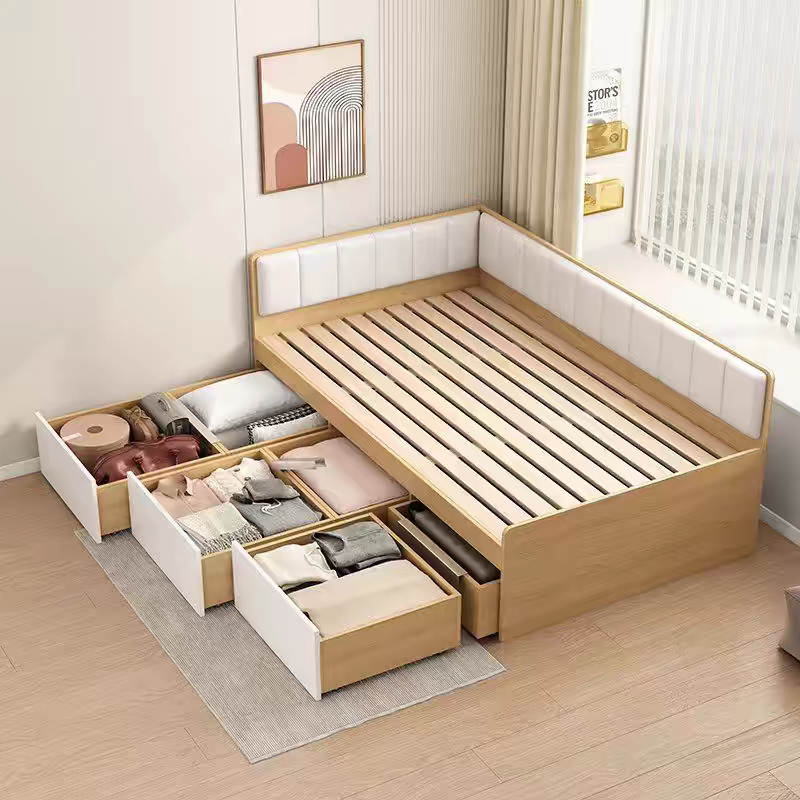 榻榻米定制小户型软包高箱储物床抽屉床儿童带围栏组合床简约现代